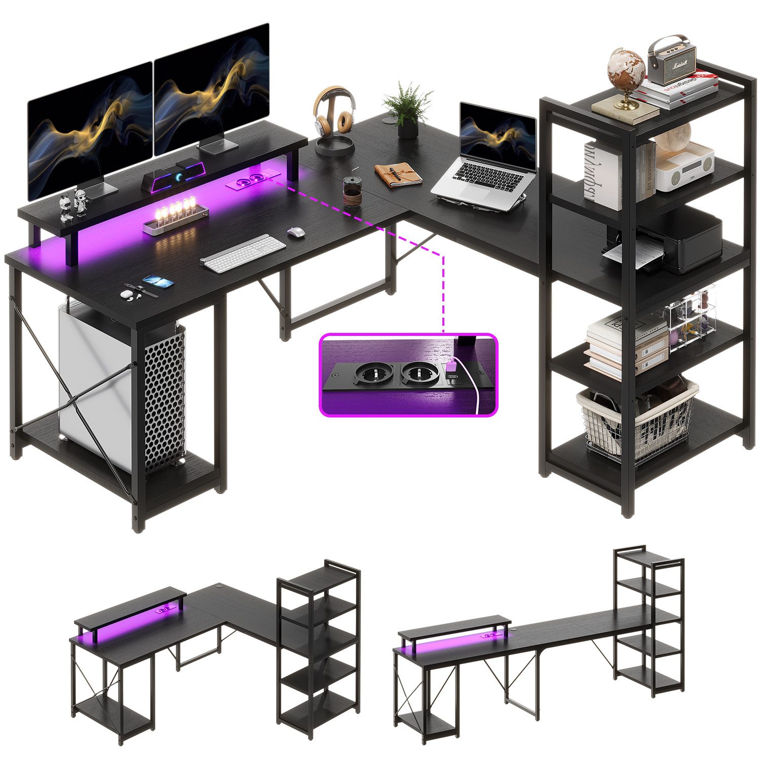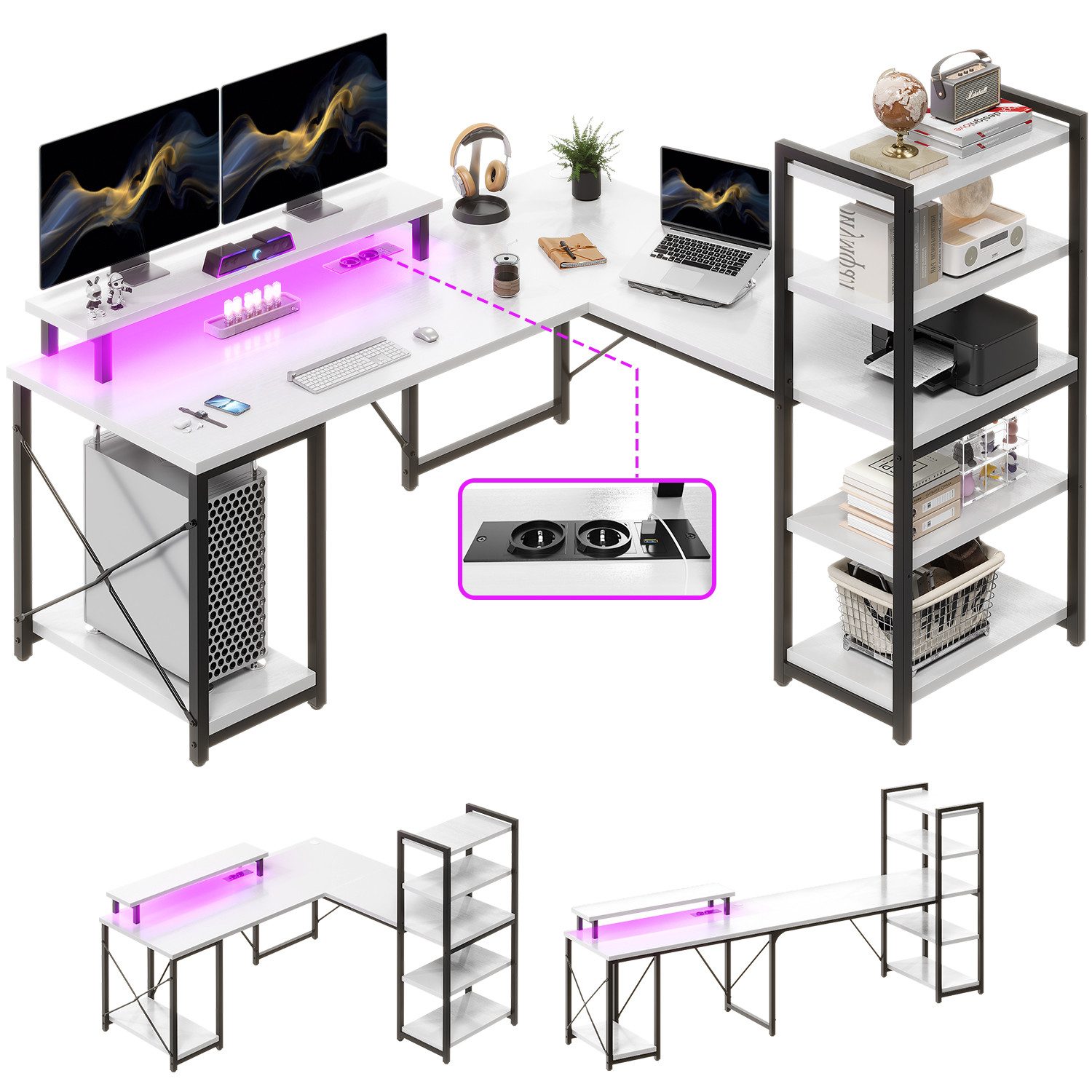 Dies ist ein vielseitiger, super Stauraum und praktischer Eckschreibtisch für zu Hause.