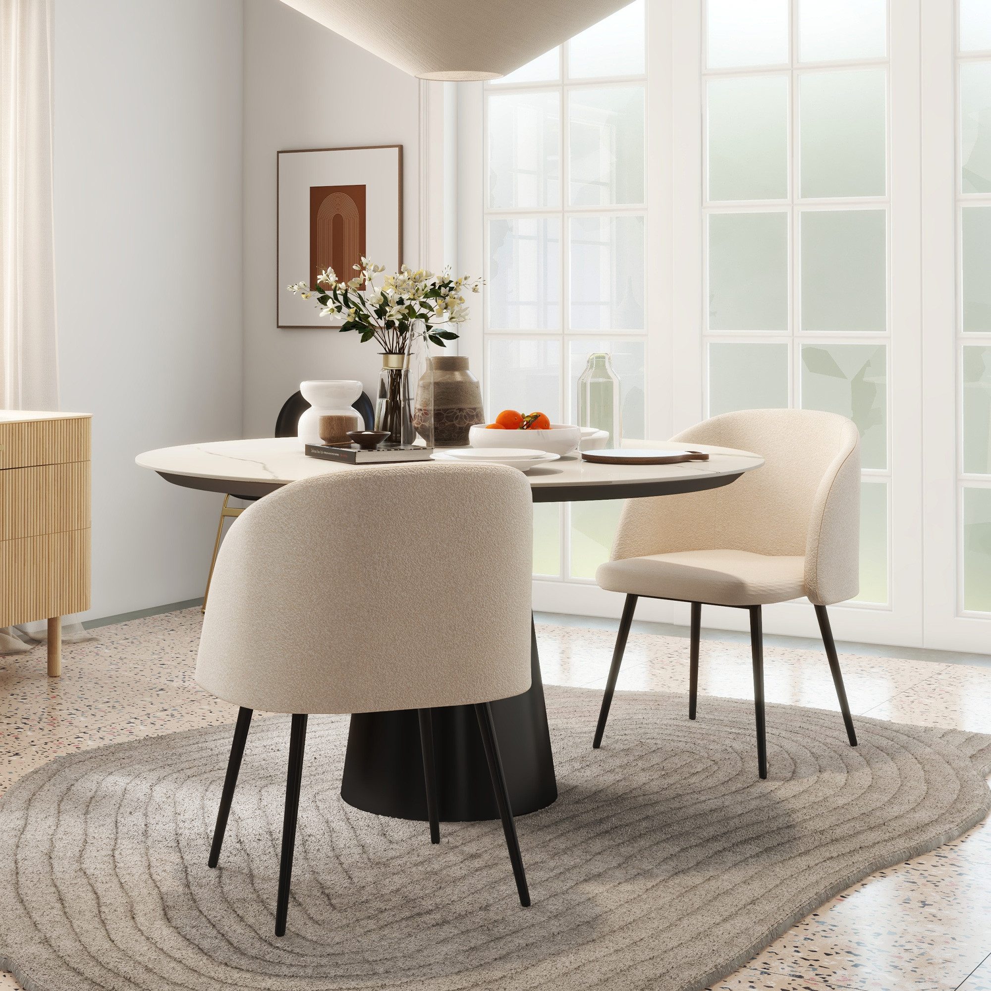 ● Set aus 2 Küchenstühlen mit weichem Stoffbezug in Lammwoll-Optik ● Schwarze Stahllbeine für eine moderne Ästhetik ● Esszimmerstuhl mit ergonomischer Rückenlehne für bequemen Halt ● Rücken- und Sitzpolsterung mit einer Dicke von 5 cm, für optimalen Komfort ● Sitzdichte von 24 kg/m³ für ausgewogenen Support ● Elegantes und zeitgemäßes Design, passend zu verschiedenen Dekorationsstilen ● Langlebige Materialien für eine lange Lebensdauer der Essstühle ● Perfekt, um Ihrem Wohnbereich Stil und Komfort hinzuzufügen ● Beine mit rutschfesten Pads, um den Boden zu schonen ● Montage erforderlich