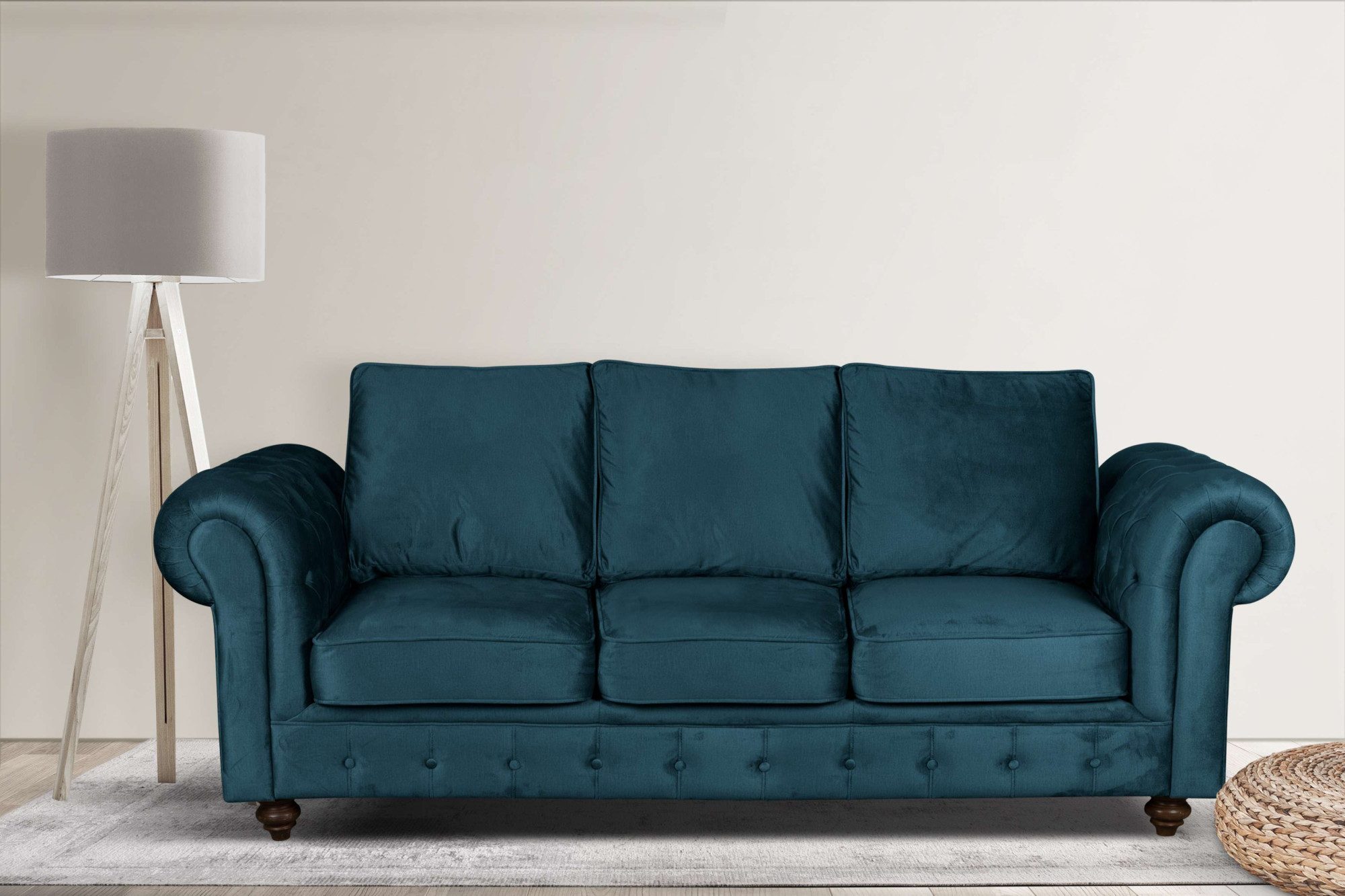 Durch die hochwertige Wellenunterfederung wird die Sitzfläche des 3-Sitzers »MENDITTE« von Home affaire gut gefedert und bleibt dauerhaft elastisch. Ein weiterer Vorteil ist das passende Rückenkissen, das nicht nur ein schönes Deko-Element ist, sondern auch für noch mehr Komfort sorgt. Die maximale Belastbarkeit liegt bei einem Gewicht von 300 Kilogramm. Der Bezug aus Samtvelours überzeugt mit der weichen Oberfläche, die sich angenehm auf der Haut anfühlt.