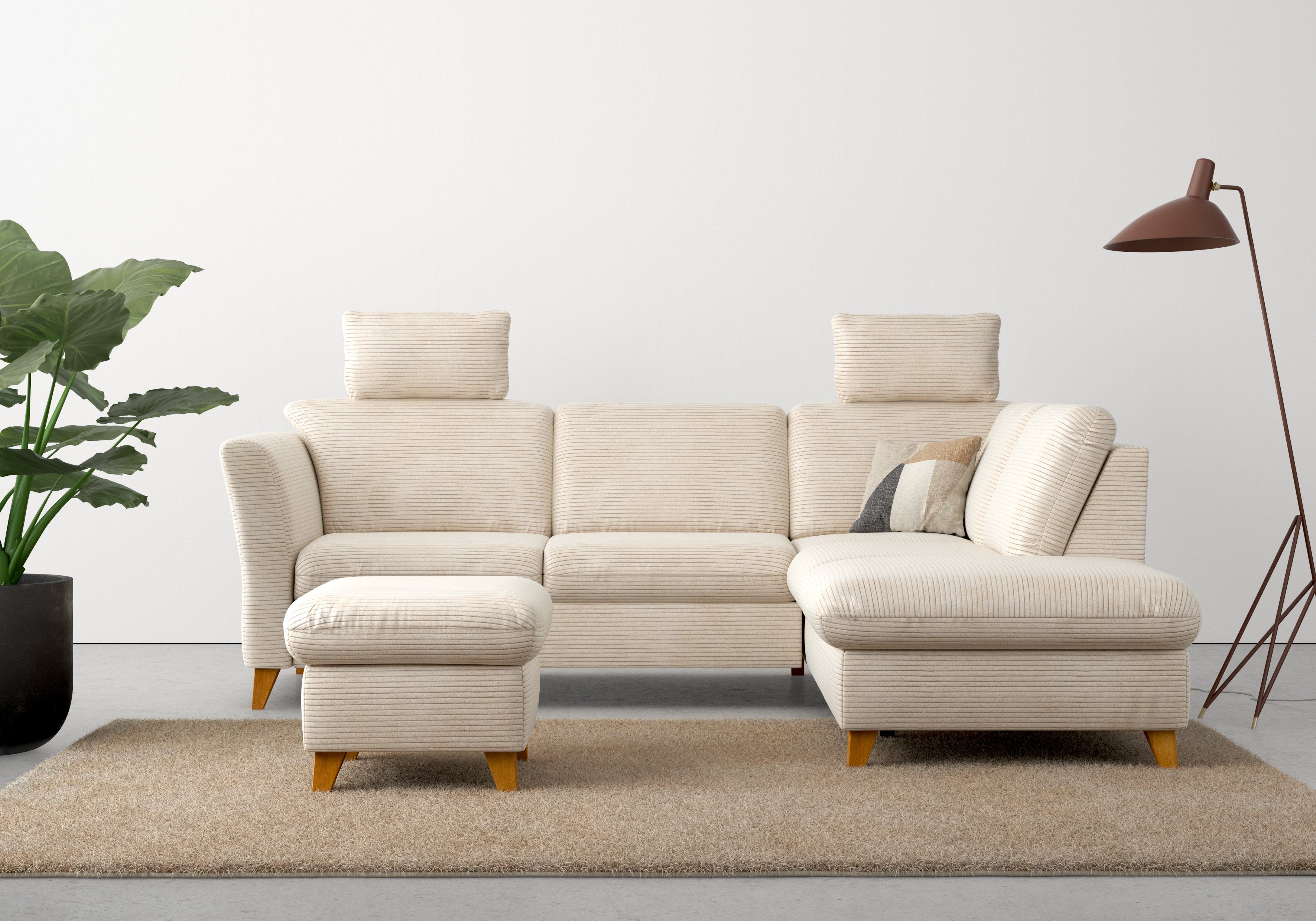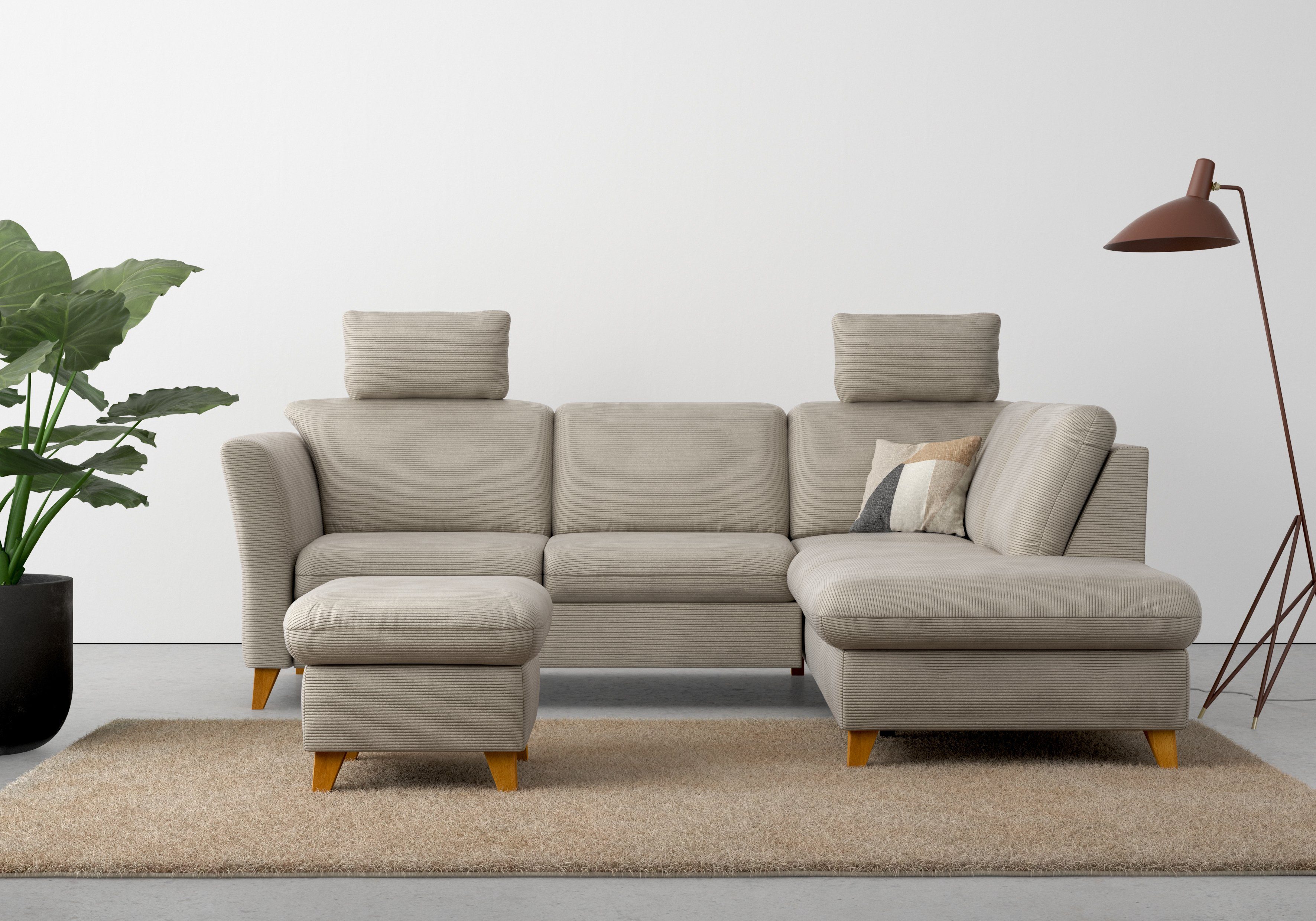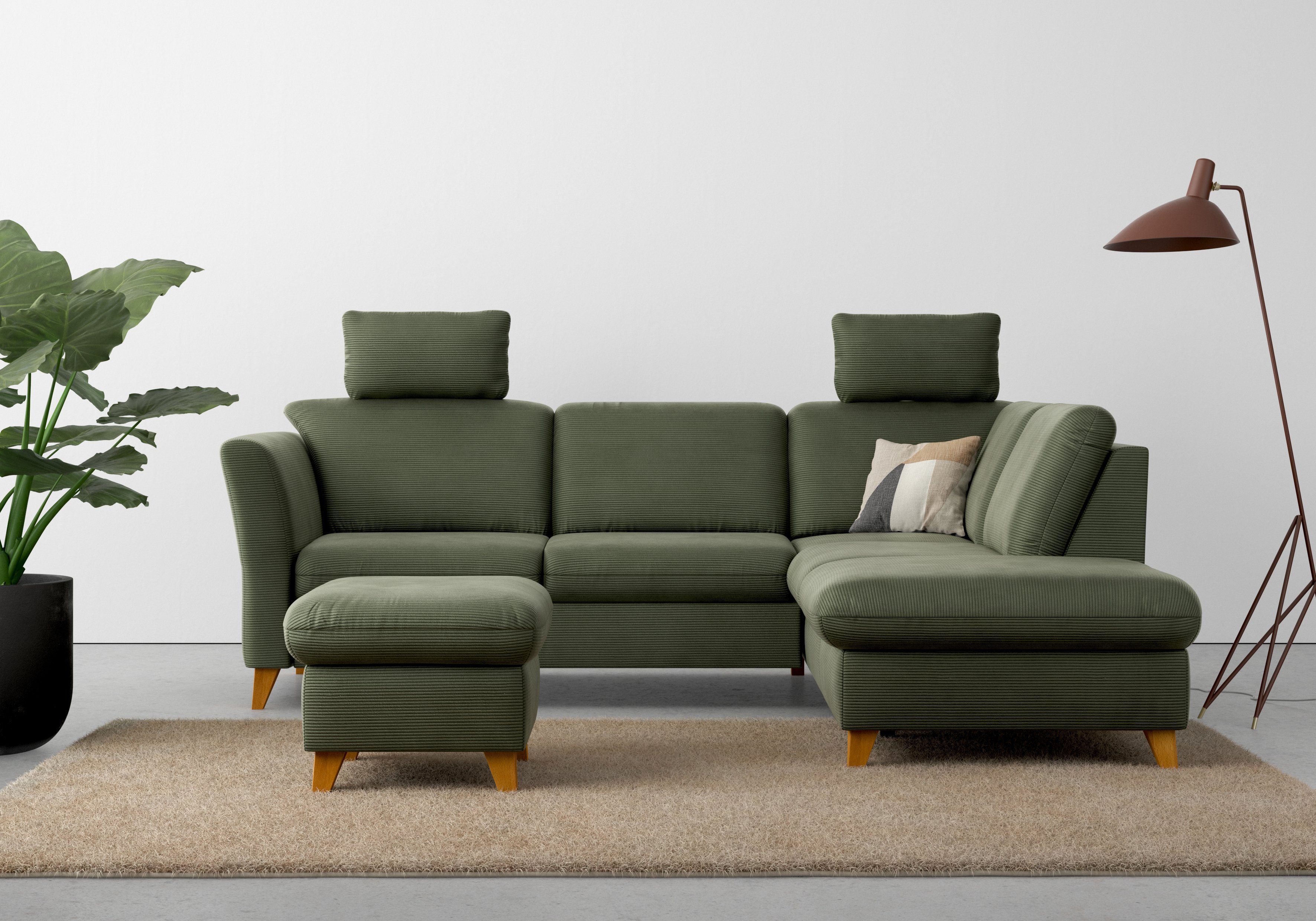 Eine dauerhaft elastische und komfortable Sitzfläche — das bekommst du bei diesem Ecksofa »Trelleborg L-Form« von Home affaire, das mit einer hochwertigen Wellenunterfederung ausgestattet ist. Beim Ecksofa befindet sich die Ottomane, von vorne betrachtet, rechts. Bei etwa 110 Kilogramm liegt die maximale Belastbarkeit pro Sitzplatz. Die eichefarbenen Füße aus Holz überzeugen mit der einzigartigen Optik. Dieses Modell wurde von Hand gefertigt.