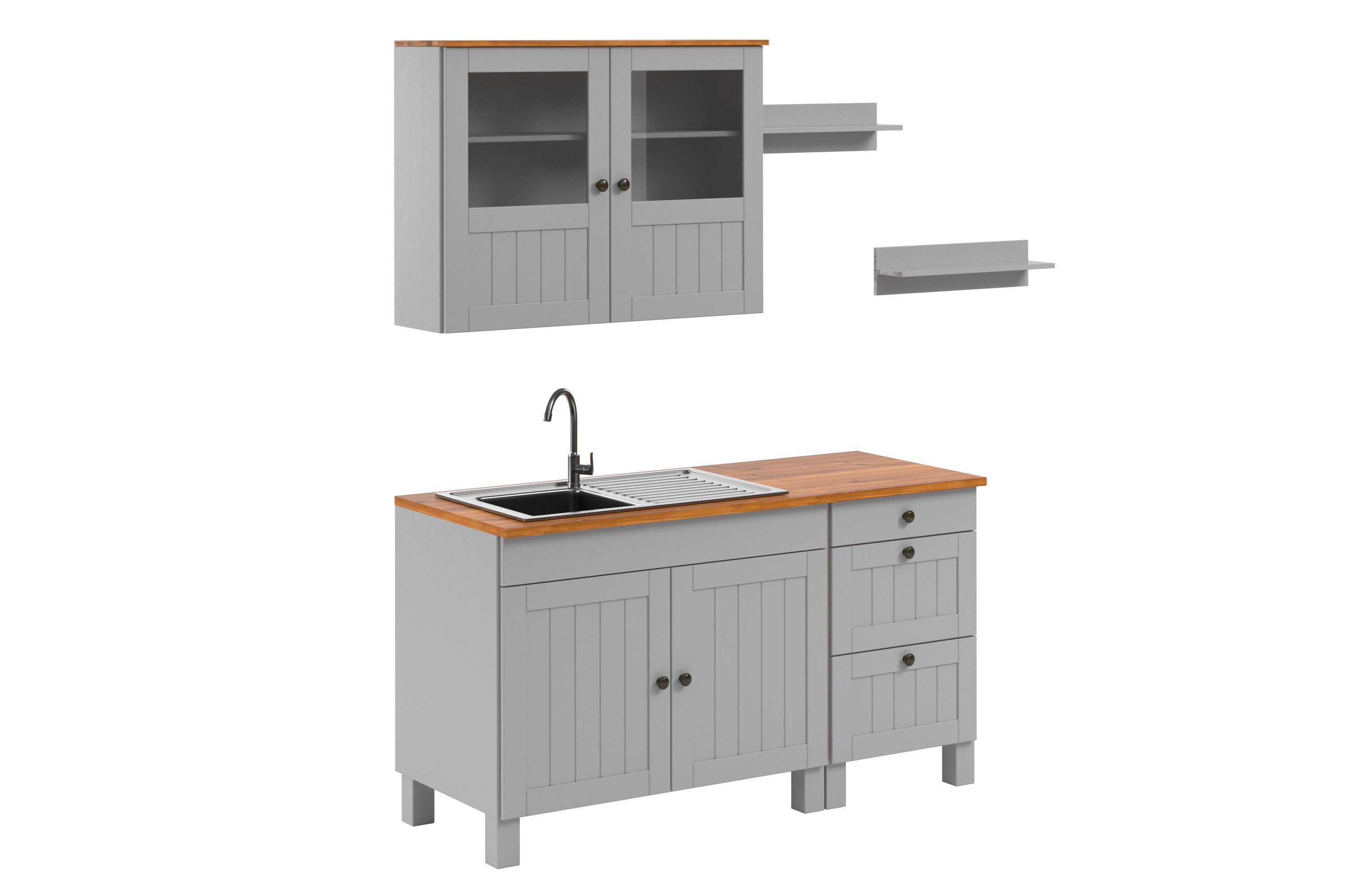 Set beinhaltet | Spülenschrank inklusiv Spüle, Unterschrank, Hängeschrank, 2 Wandboards |