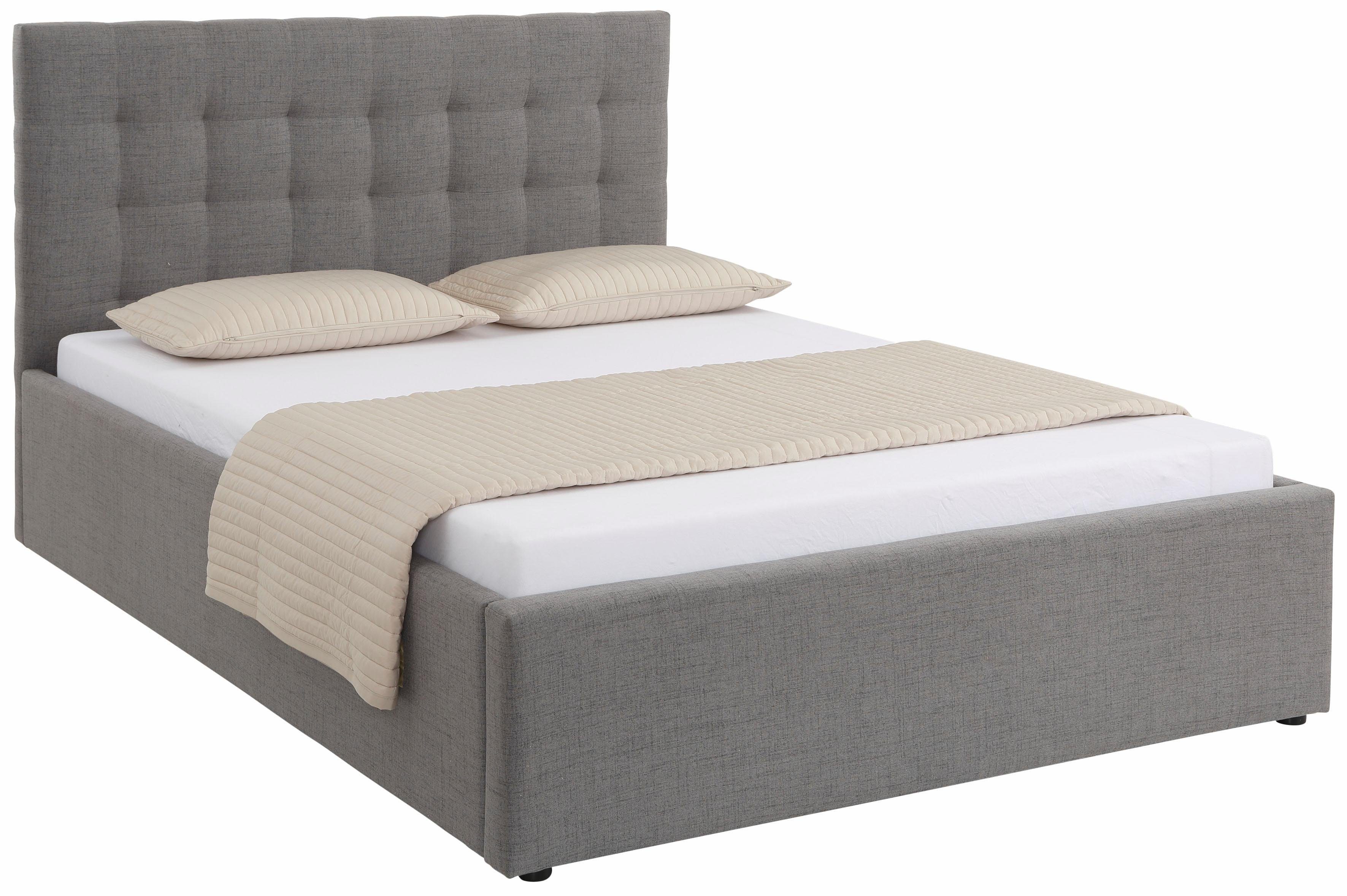 Dieses Polsterbett »Hamar, Knopfsteppung im Kopfteil, bis 250 KG belastbar« von Home affaire zeichnet sich durch einen gemütlichen Bezug und ein gepolstertes Kopfteil aus. An diesem kannst du dich entspannt zurücklehnen und nach einem anstrengenden Tag zur Ruhe kommen. Belastbar ist dein neues Möbelstück bis zu 250 Kilogramm. Dank der erhöhten Liegefläche finden praktische Aufbewahrungsboxen ihren Platz. Das gepolsterte und graue Bettgestell ist mit runden Füßen versehen. Das Kopfteil ist 104 cm hoch.