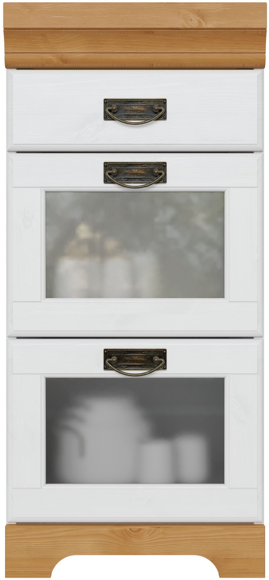 Den gemütlichen Landhausstil des Unterschranks in der Inneneinrichtung nochmal aufzugreifen oder zu unterstreichen ist gar nicht schwer: Das Holz passt gut zu anderen Naturmaterialien und zarten Farben wie Creme, Beige oder Grau. Dekorieren kannst du unter anderem mit Porzellan- oder Tonelementen, um das zwanglose Landhaus-Flair zu unterstreichen. Er ist Bestandteil der Serie Rügen. Von dieser kannst du dich beim Einrichten inspirieren lassen.