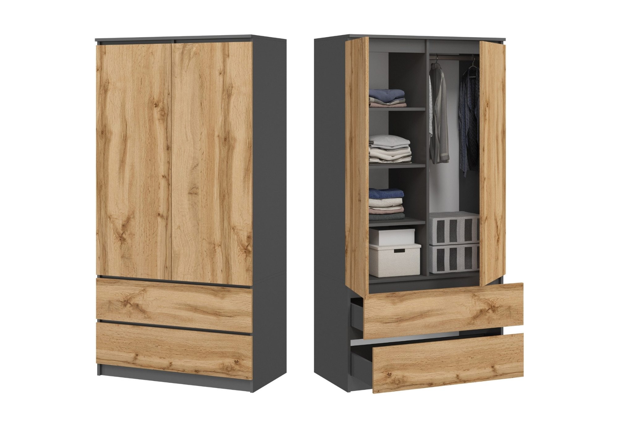 Die Einlegeböden eignen sich hervorragend für die ordentliche Aufbewahrung von Kleidung, Boxen oder Taschen, während die Kleiderstange ideal ist, um Jacken, Blusen oder Hemden knitterfrei aufzuhängen. Zwei Schubladen im unteren Bereich bieten zusätzlichen Platz für Wäsche, Accessoires oder kleinere Dinge des täglichen Gebrauchs.