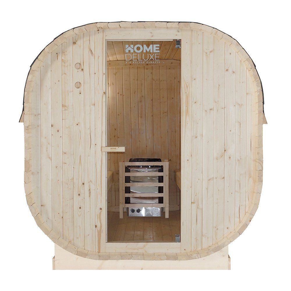 Entdecke unsere hochwertige Fasssauna aus robustem Fichtenholz, das nicht nur eine lange Haltbarkeit garantiert, sondern auch ein echter Blickfang in deinem Garten sein wird.