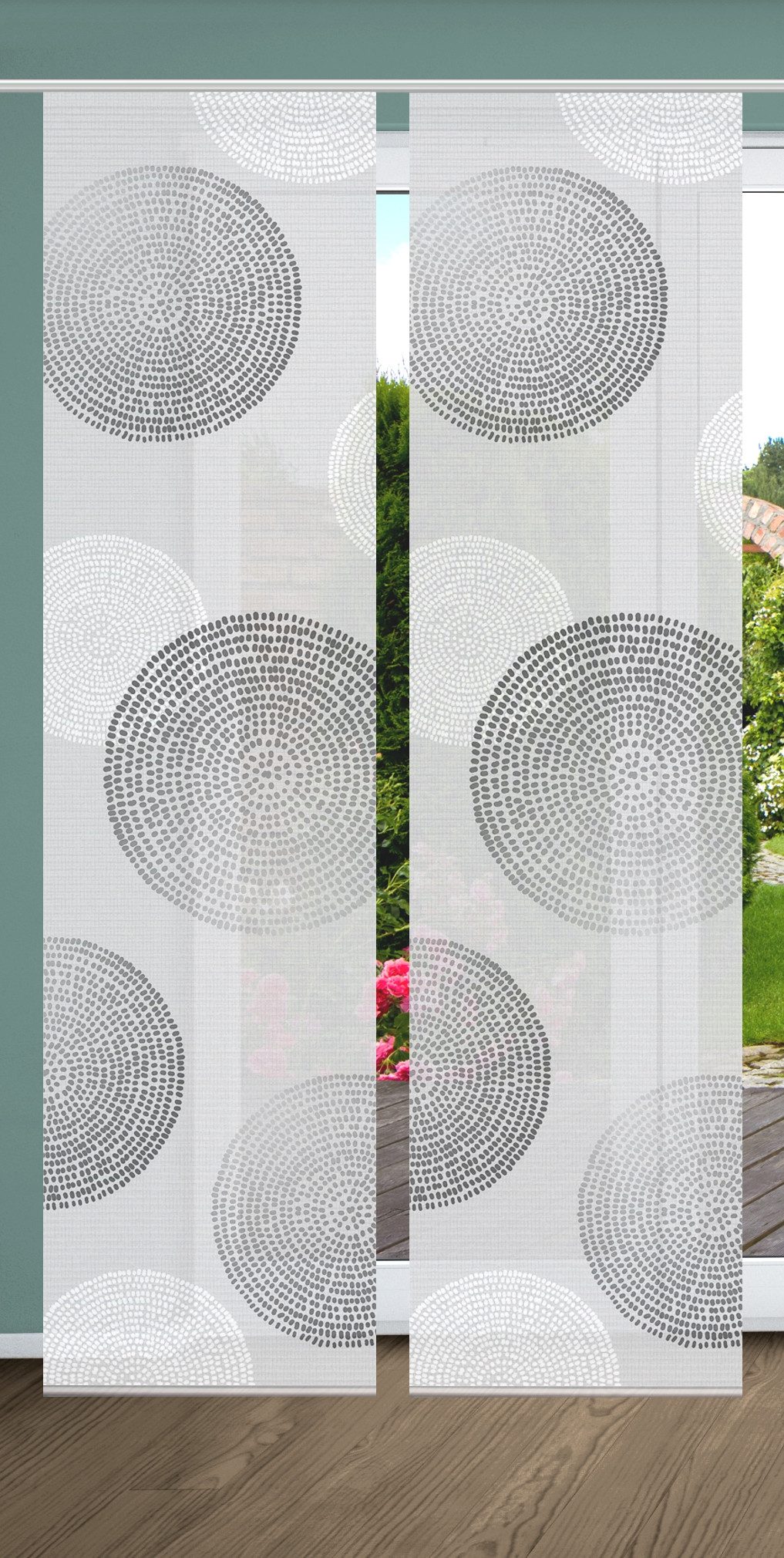 Hinweis Dekoration | Die angegebenen Maße sind die fertig dekorierten Maße. Eine Schiebegardine ist eine schmale, glatt hängende Stoffbahn, die sich sowohl als Sichtschutz als auch zur Raumteilung eignet. Durch die Schiebetechnik sind Schiebegardinen sehr flexibel einsetzbar. |