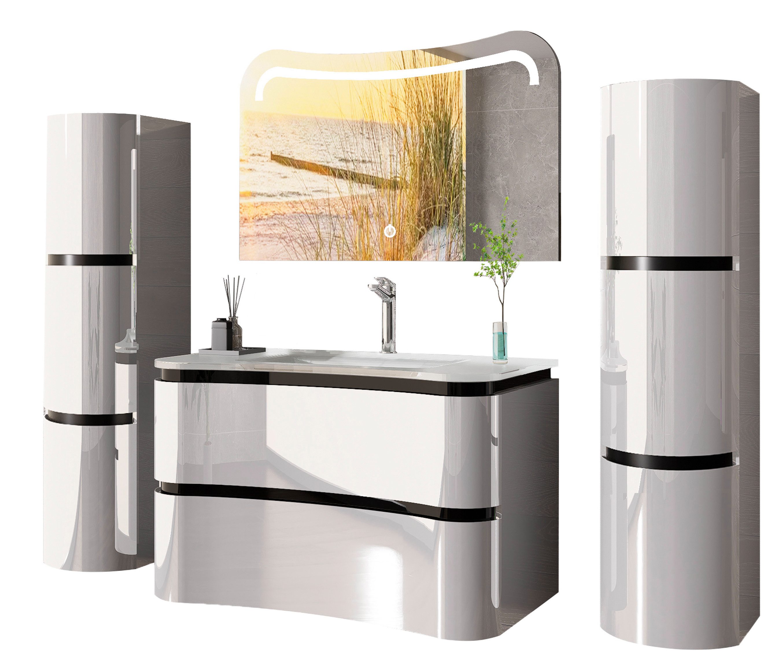 Badmöbelset bis 5 Teilig Hochglanz Lackiert Fronten und Seiten Schwarz oder Weiß.
