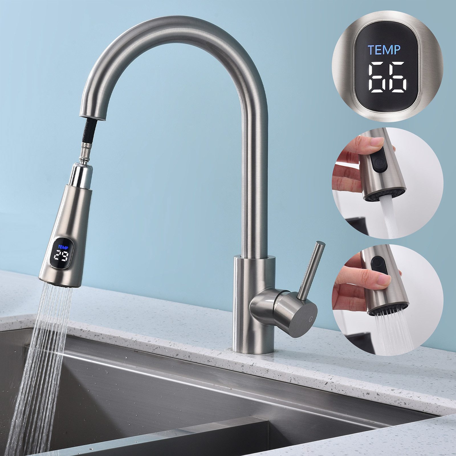 Die LED-Digitalanzeige liefert eine präzise Wassertemperaturanzeige in Echtzeit, und der 360°-Schwenkhahn bietet maximale Flexibilität.