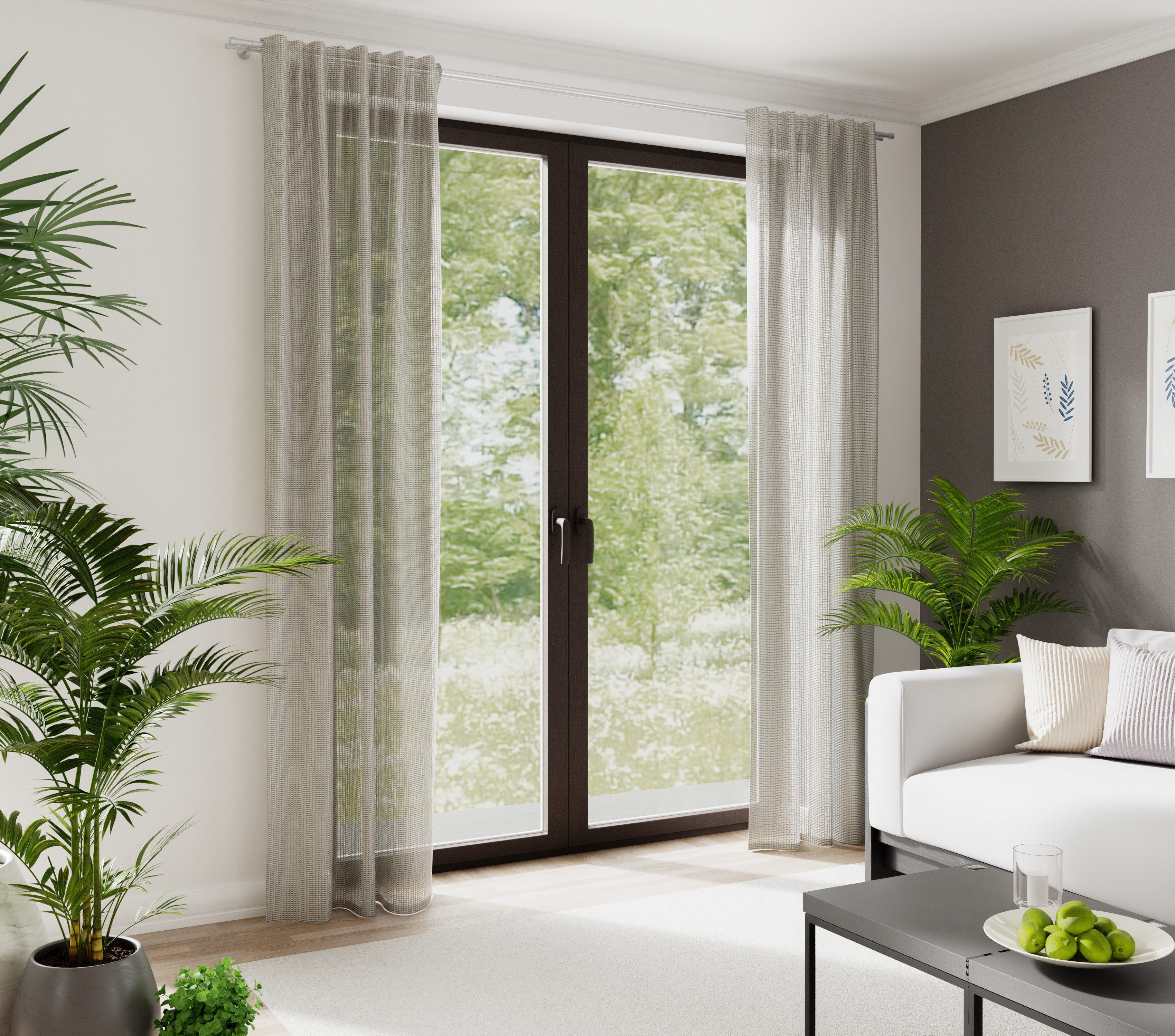 • halbtransparenter Stoff dämpft einfallendes Licht und bietet einen leichten Sichtschutz