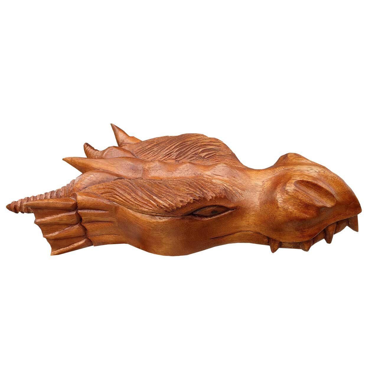 Gefährlich massiv aussehender Drachenkopf handgeschnitzt aus Soar-Holz.