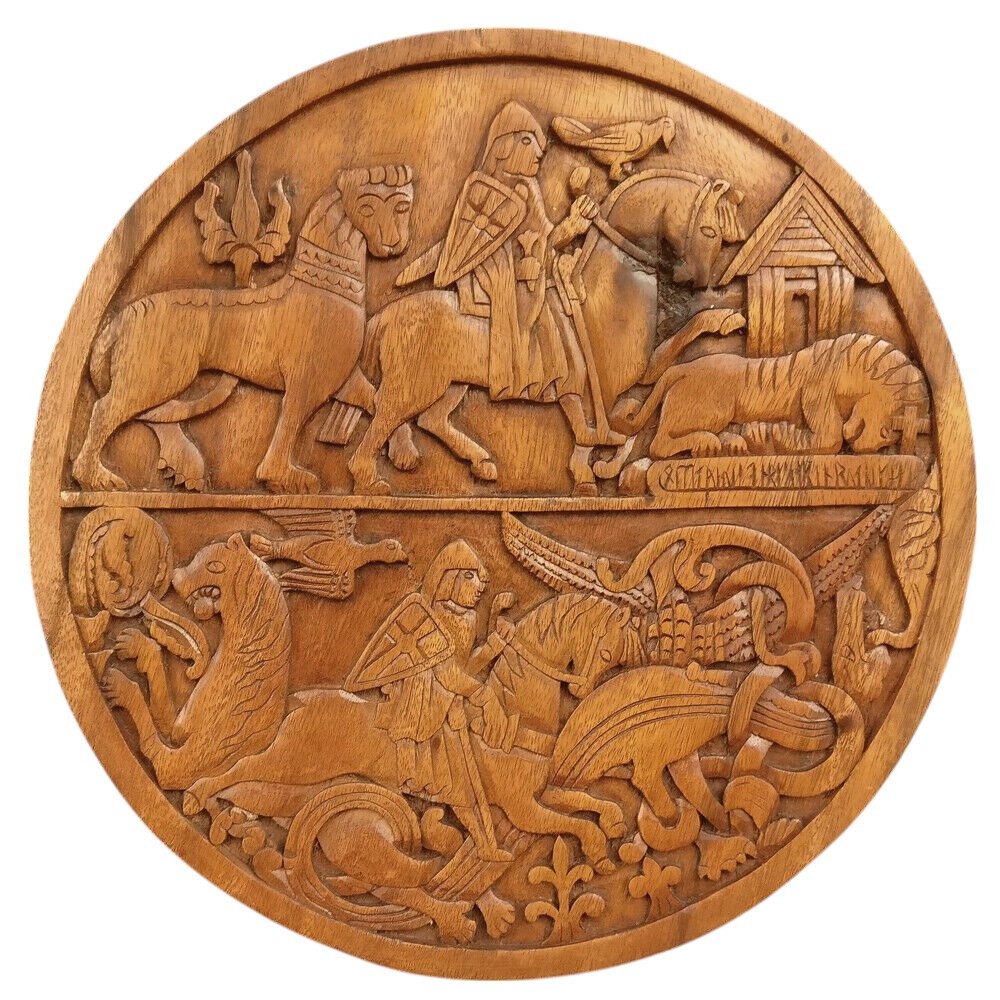 Wandschmuck Ritter Fabelwesen 30 cm Ritterszene Mystic Pferd Wandbild Deko Holz