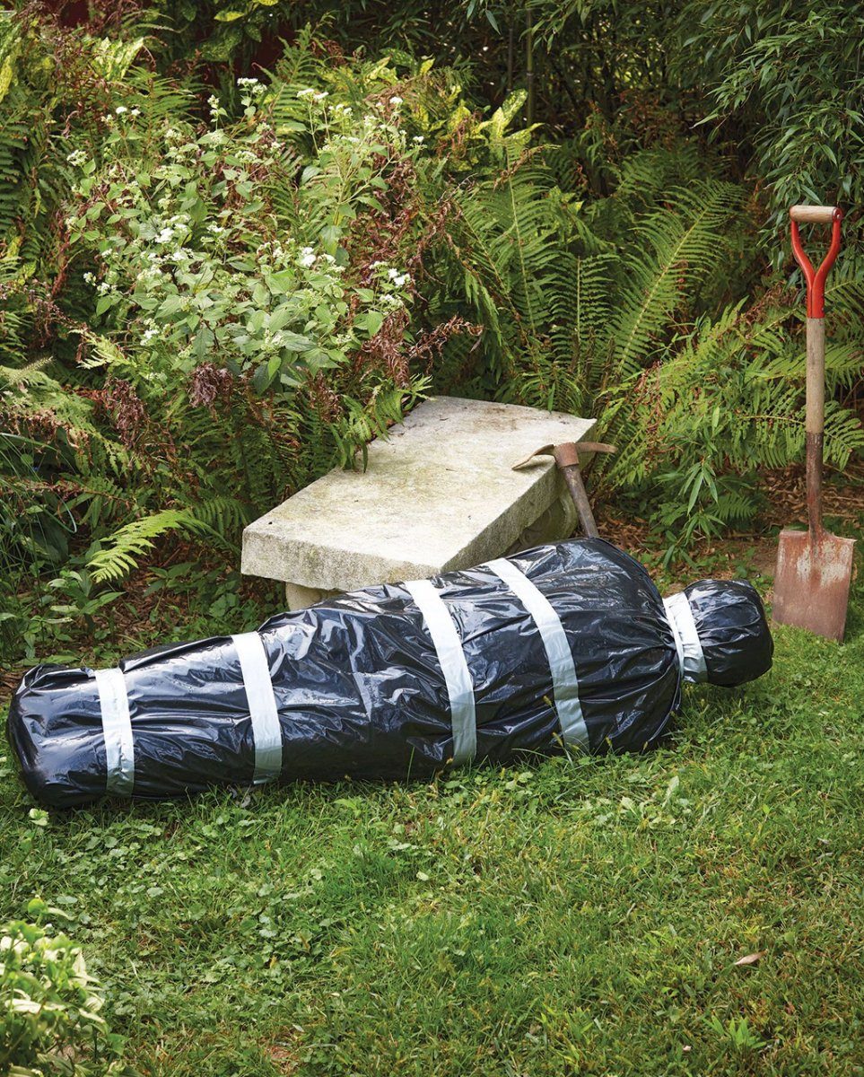 Die aufblasbarer Körper in Müllsack Deko mit Tape ist eine geniale Tatort Deko, die den ein oder anderen zum Stutzen bringt. Du kannst die aufblasbare Deko der Leiche, die in einem schwarzen Plastiksack steckt im Haus oder im Garten verwenden.
