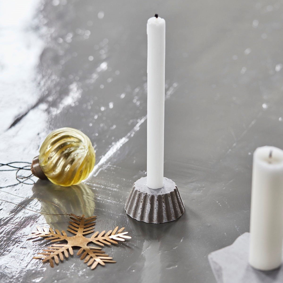 Schmücke deinen Weihnachtstisch mit einem außergewöhnlichen Detail. Der geriffelte Kerzenständer Mold Bake von House Doctor wurde aus grauem Kunststein gefertigt und präsentiert sich in einer Zementoptik, die für einen minimalistischen und industriellen Touch sorgt. Schlicht, zeitlos und ganz einfach auf den Punkt gebracht. Ein einzigartiges Design, das einen schönen Kontrast zu deiner traditionellen Weihnachtsdeko aus anderen Materialien bietet. Stelle ein paar Kerzenständer auf deinem Esstisch auf oder integriere den Kerzenständer in ein Weihnachtsarrangement mit weiteren Deko-Elementen.