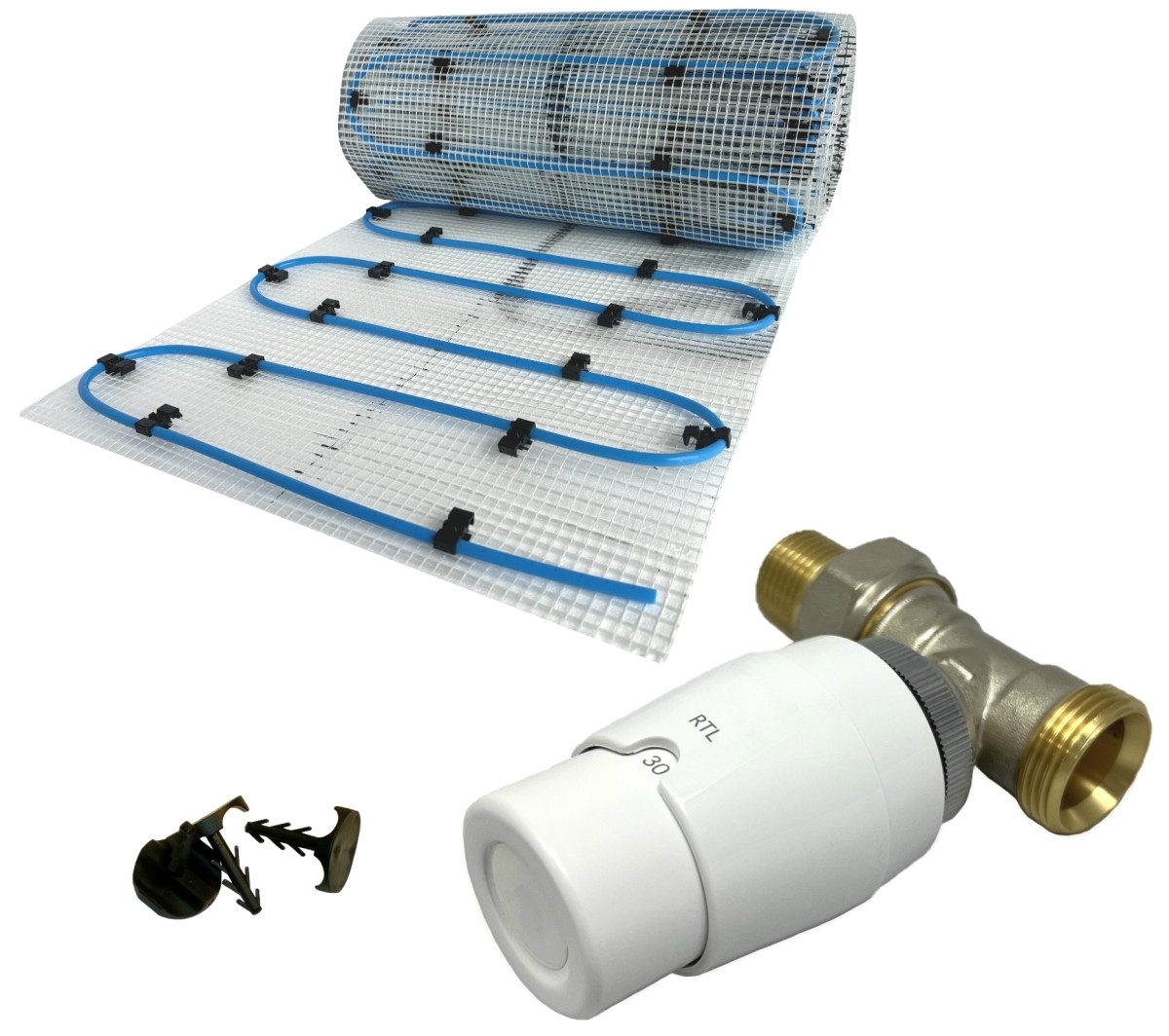 Die Heizungsrohre einer bzw. mehrerer Matten werden mittels entsprechender Anschlussverteiler an Vor- und Rücklauf (meist parallel zum nächstgelegenen Heizkörper) angeschlossen. Um dies zu erleichtern sind die Rohre mit farblichen Markierungen versehen.