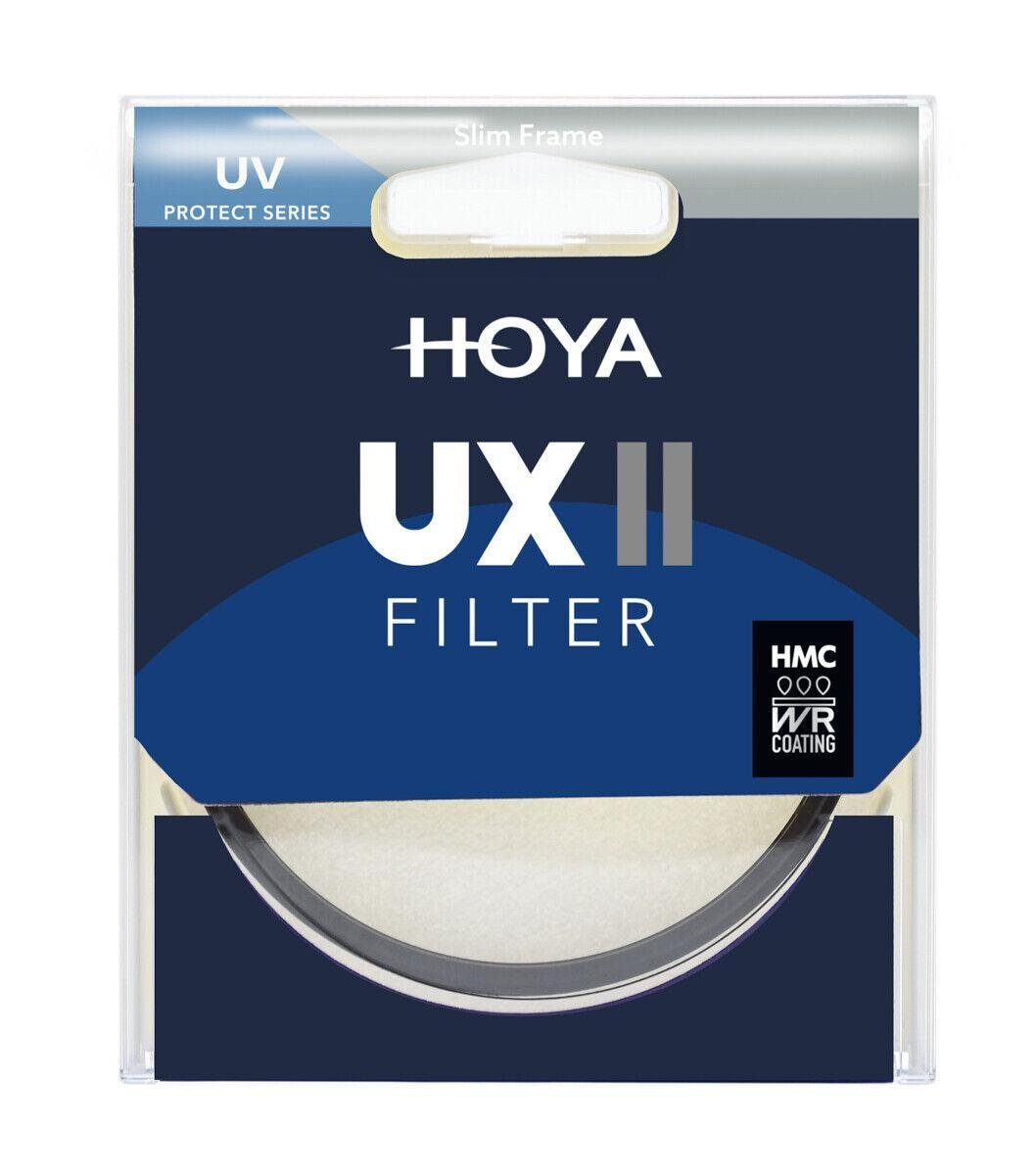 Bei dem ultraflachen Hoya UX II UV-Filter kommt eine verbesserte „High Multi Coated Water repellent“ – Vergütung zum Einsatz, die Wasser abperlen und Schmutz noch leichter entfernen lässt.