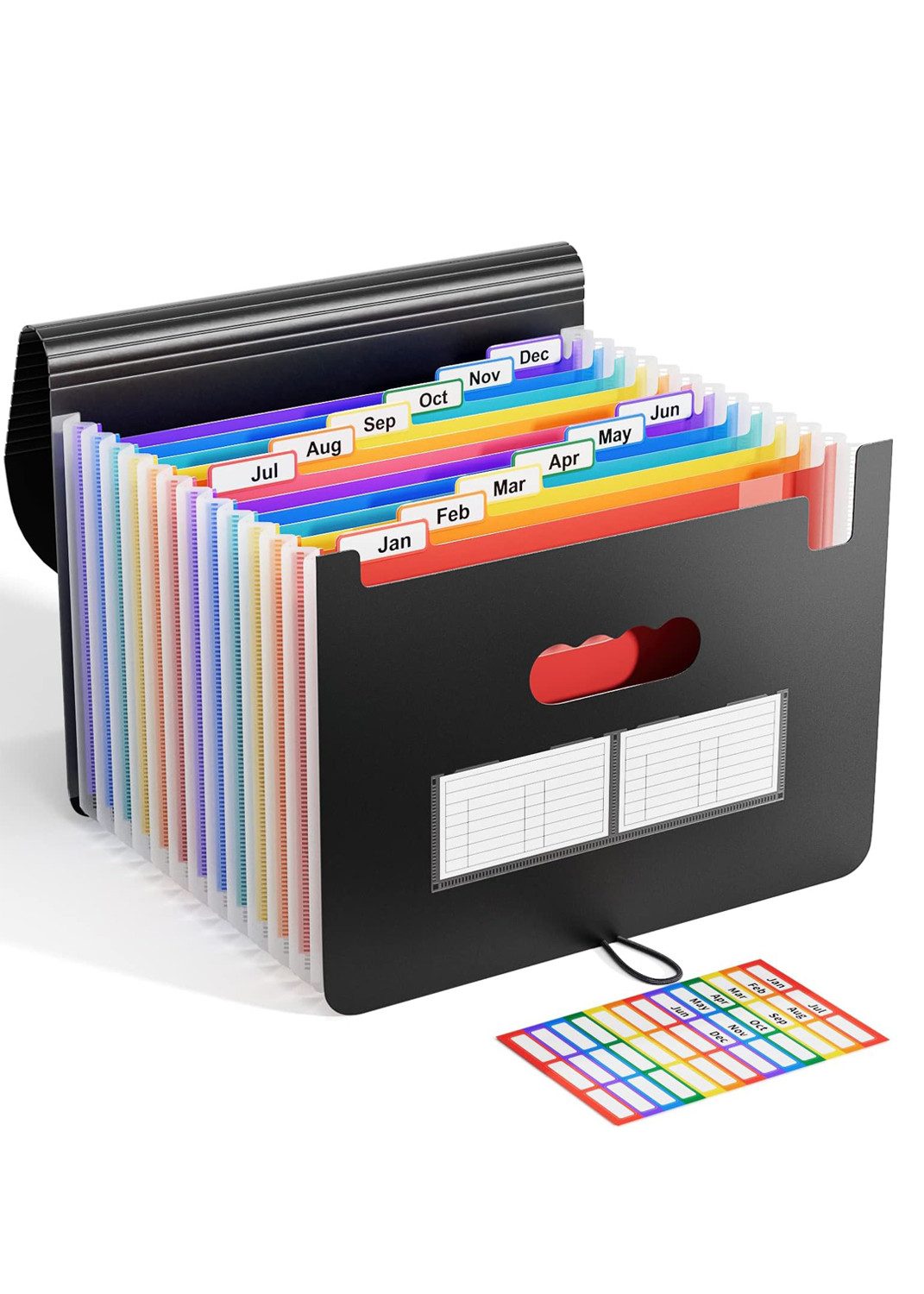 MONATLICHE BILLENORGANISATION - Portable Akkordeanauskleidung, oben und unten erweiterbar, 12-Taschen und mehrfarbige Tabs, für Buchstaben/A4-Format