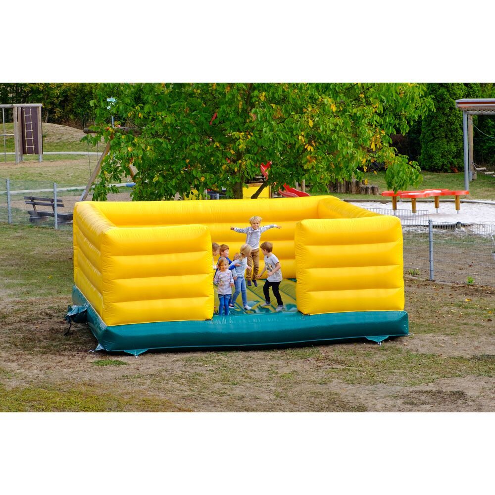 Die elastischen Schutzwände verhindern, dass Kinder beim wilden Hüpfen von dem großen Luftkissen katapultiert werden – die Kids können auf sichere Weise ihrem Bewegungsdrang nachgehen und sich austoben. Im Behindertenbereich bieten sich vielseitige und besonders sichere Einsatzmöglichkeiten. Da alles luftgefüllt und flexibel ist, besteht bei beaufsichtigter Nutzung kaum ein Verletzungsrisiko. Die Höhe der Seitenwände beträgt 155 cm, so dass hier Kinder und Personen bis 155 cm Körpergröße spielen können.