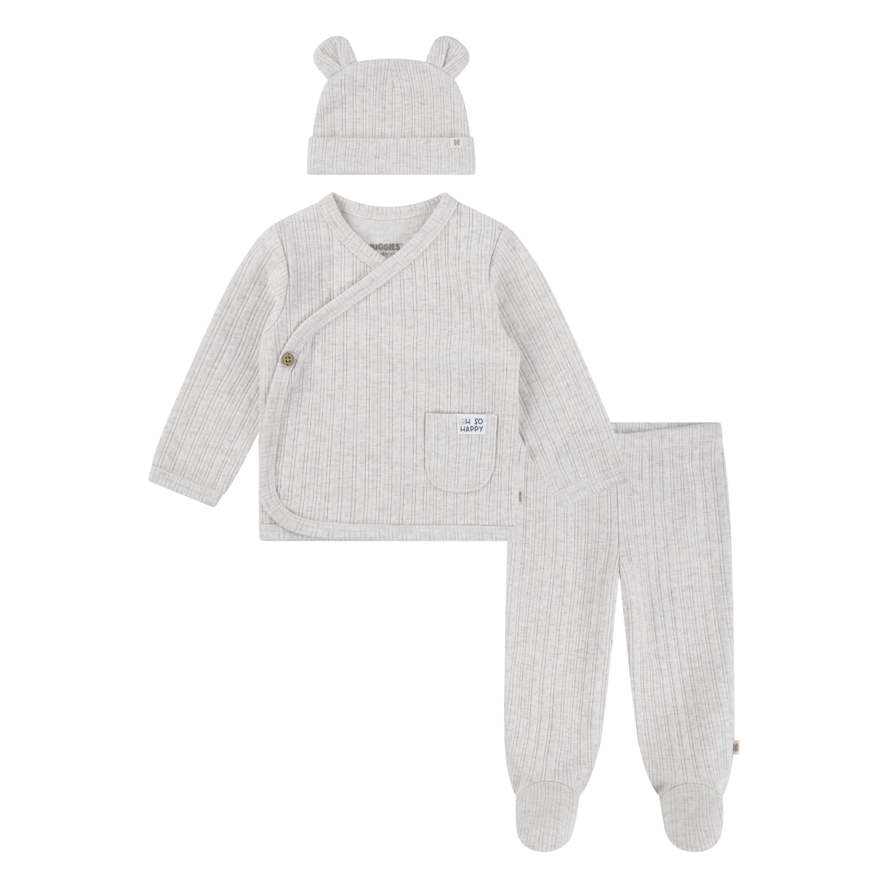 Eine stylische und zugleich praktische Outfit-Lösung — das Set mit Langarmshirt und Hose von HUGGIES babywear.
