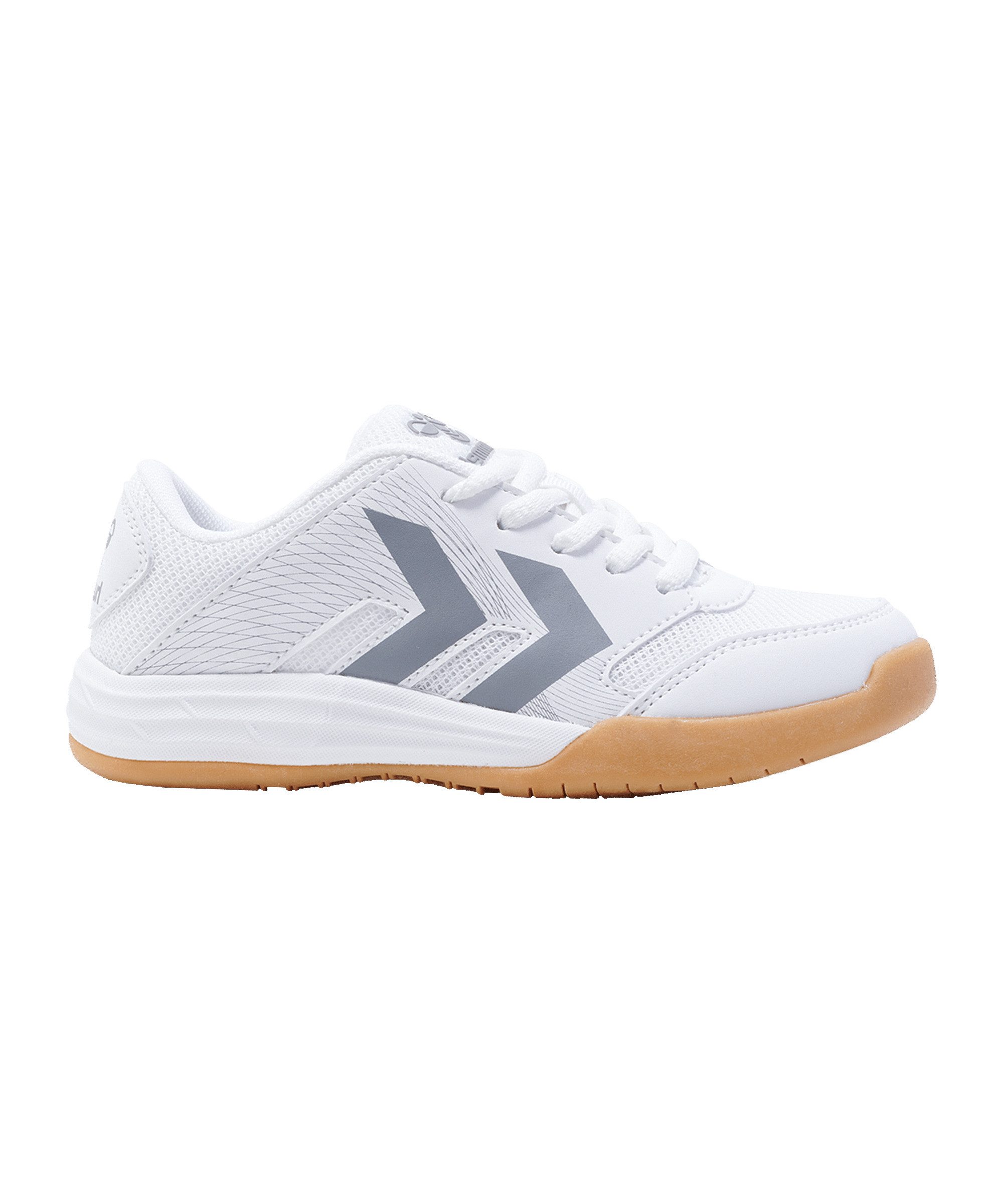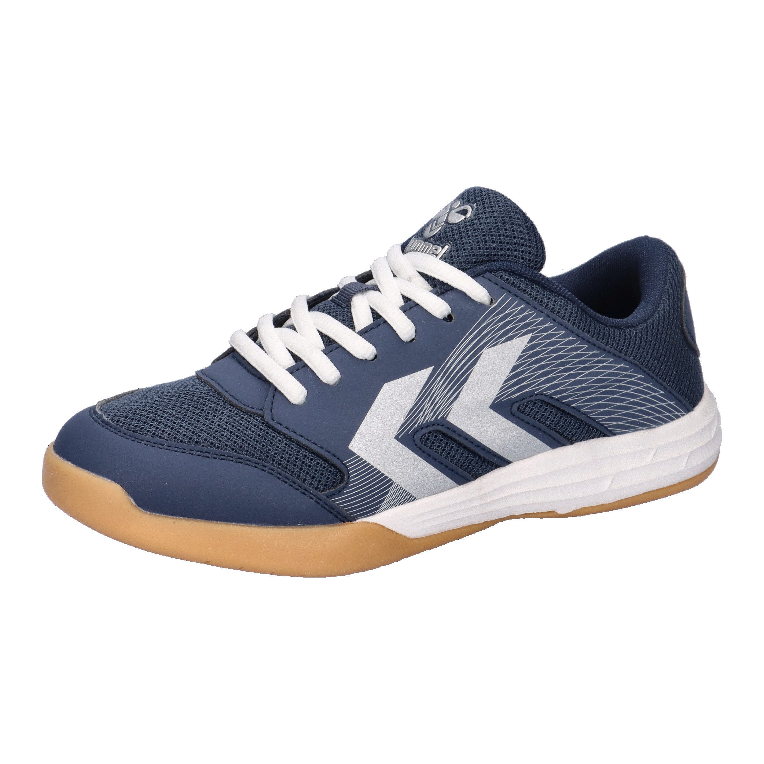Hummel Kinder Hallenschuhe MULTIPLAY STABLE LC JR. Dank der TPR-Außensohle mit sechseckigem Profil ist mit dem MULTIPLAY STABLE LC JR ein hervorragender Grip gewährleistet. Die offene Gitterkonstruktion und das Mesh sowie die EVA-Zwischensohle sorgen für eine atmungsaktive und bequeme Passform. Diese hummel Sneaker verfügen außerdem über eine breite und stabile Außensohle für zusätzlichen Halt. Obermaterial: Textil, Sonstiges Material. Futter und Decksohle: Textil. Laufsohle: Sonstiges Material.