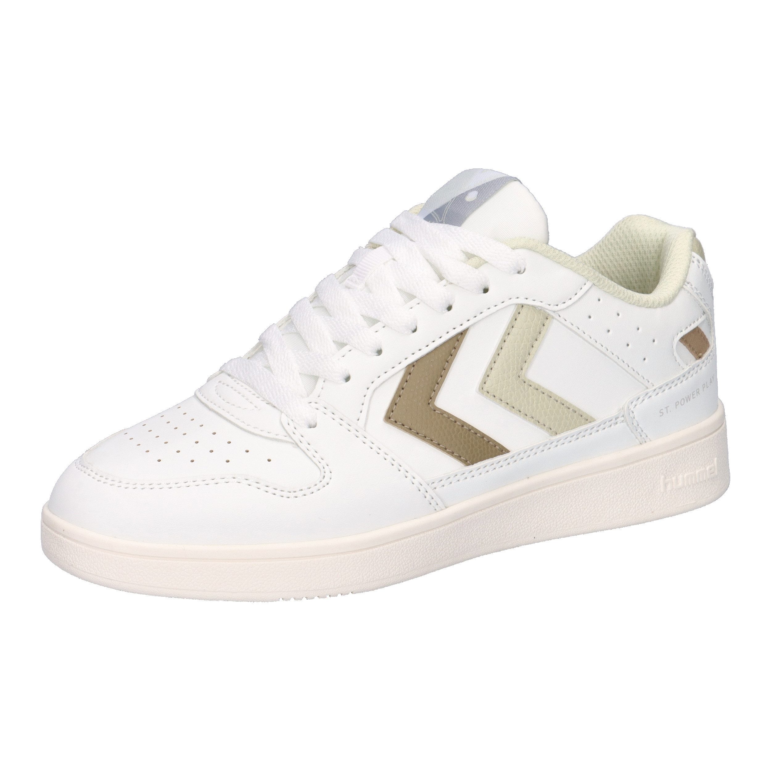 Die Hummel Damen Sneakers low St. Power Play Wmns Lzd 227961 sind die perfekte Kombination aus Stil und Komfort. Das schlichte Design in Weiß mit den markanten Hummel-Winkeln in Gold verleiht den Sneakers einen sportlich-eleganten Look, der zu jedem Outfit passt. Die hochwertige Verarbeitung und das strapazierfähige Material sorgen zudem für eine lange Lebensdauer und angenehmes Tragegefühl. Dank der leichten Sohle und der gepolsterten Innensohle bieten die Hummel Sneakers einen hervorragenden Tragekomfort, egal ob beim Sport, in der Freizeit oder im Alltag. Die rutschfeste Laufsohle sorgt zudem für einen sicheren Halt auf verschiedenen Untergründen. Mit ihrem zeitlosen Design und der hohen Funktionalität sind die Sneakers die perfekte Wahl für aktive Frauen, die Wert auf Qualität und Stil legen. Die Hummel Damen Sneakers low St. Power Play Wmns Lzd 227961 sind nicht nur optisch ansprechend, sondern überzeugen auch durch ihre Langlebigkeit und Strapazierfähigkeit. Egal ob beim Spaziergang im Park, beim Einkaufen in der Stadt oder beim Training im Fitnessstudio - mit diesen Sneakers sind Sie immer gut ausgestattet. Gönnen Sie sich diesen modischen Allrounder und setzen Sie ein Statement in Sachen Style und Komfort.
