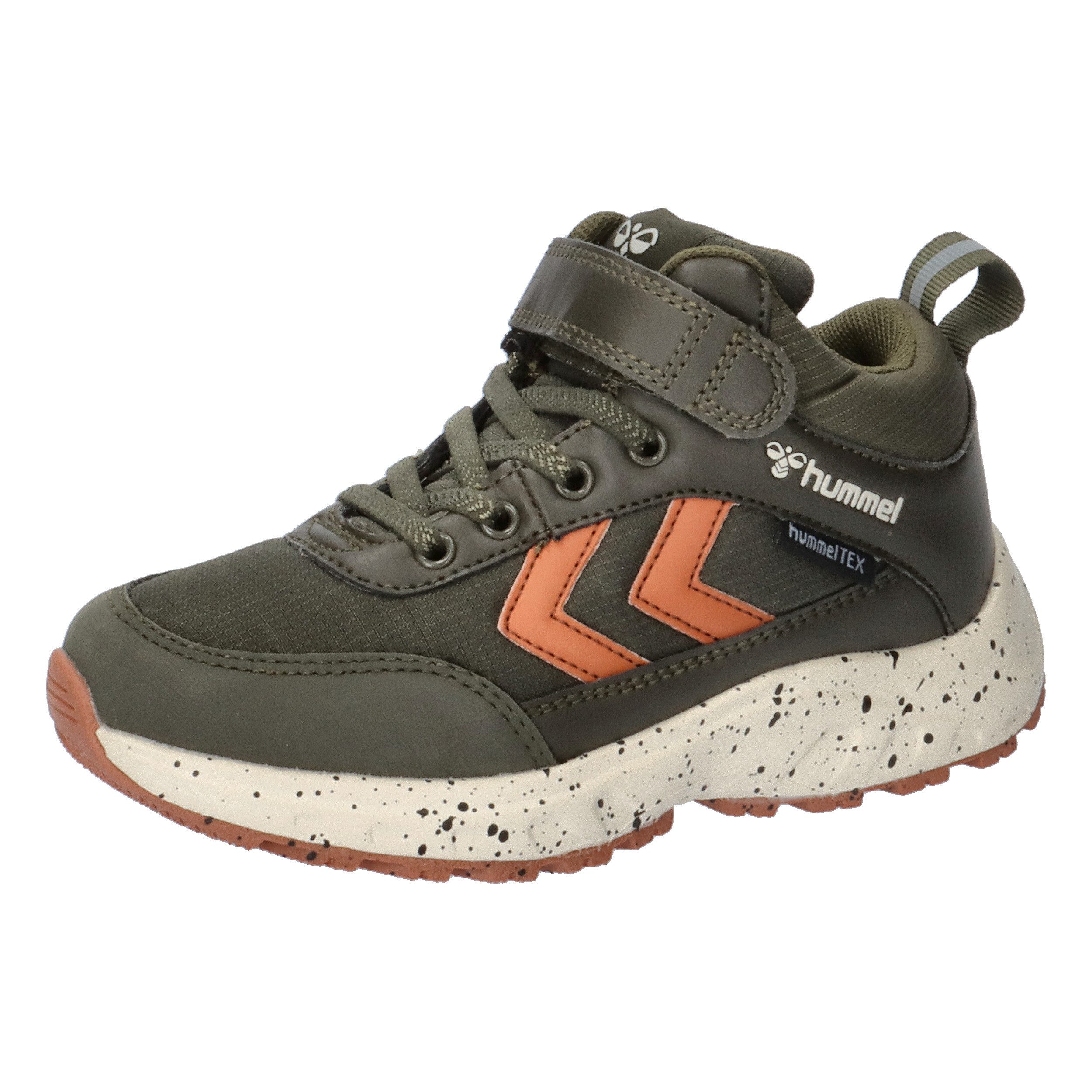 Hummel Kinder Sneaker Root Tex JR. Dank der hummelTEX Membran im Ripstop-Nylon und einer synthetischen Obermaterialkonstruktion hält der ROOT TEX JR die Füße deiner Kleinen bequem, trocken und gut belüftet. Diese hummel® Turnschuhe sind von Wanderschuhen inspiriert und verfügen über eine EVA-Zwischensohle mit einer Gummiaußensohle für einen leichten und bequemen Gang. Das warme Futter dieser Stiefel und die elastischen Schnürsenkel mit einem zuschneidbaren Klettverschluss sorgen jederzeit für die perfekte Passform. Diese Sneaker verfügen über eine normale Weite. Bei der Auswahl der Розмір взуття eines Kindes empfehlen wir, bei diesen Schuhen 1–1,5 cm Wachstumsspielraum zu lassen. Впередe Informationen findest du in unserer Таблиця розмірів. Obermaterial: Textil, Sonstiges Material. Futter und Decksohle: Textil. Laufsohle: Sonstiges Material.