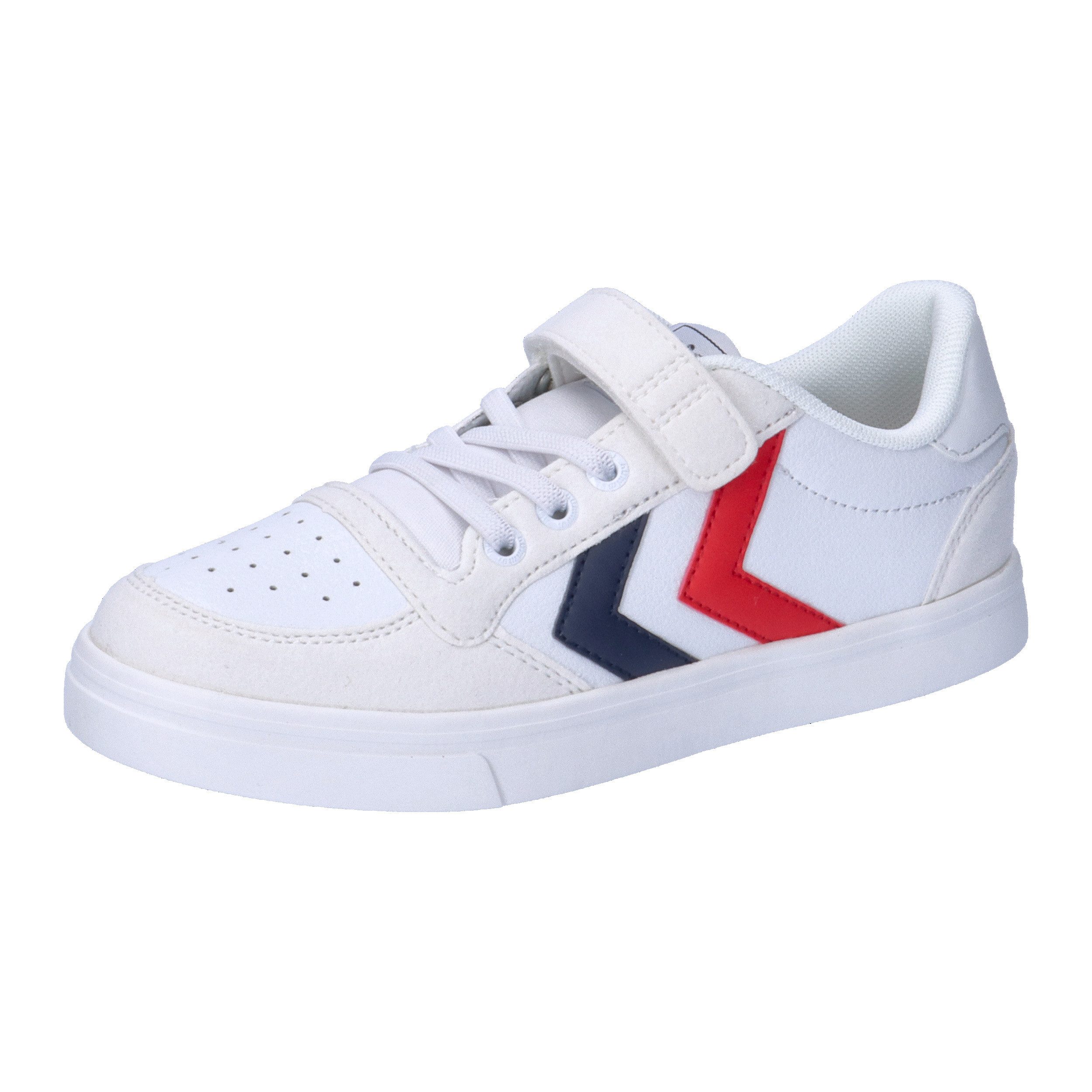 Hummel Kinder Sneaker Slimmer Stadil Leather Low Jr. Der SLIMMER STADIL LEATHER LOW JR besteht aus hochwertigem Veloursleder mit wasserabweisendem Finish. Durch das perforierte Schuhblatt bietet dieser Turnschuh hervorragende Atmungsaktivität. Er verfügt über einen zuschneidbaren Klettverschluss sowie verstellbare elastische Schnürsenkel für eine individuelle und bequeme Passform. Konstruktion aus Veloursleder. Zuschneidbarer Klettverschluss. Elastische Schnürsenkel. Perforiertes Blatt. Wasserabweisend. Obermaterial: Leder. Futter und Decksohle: Textil. Laufsohle: Sontiges Material.