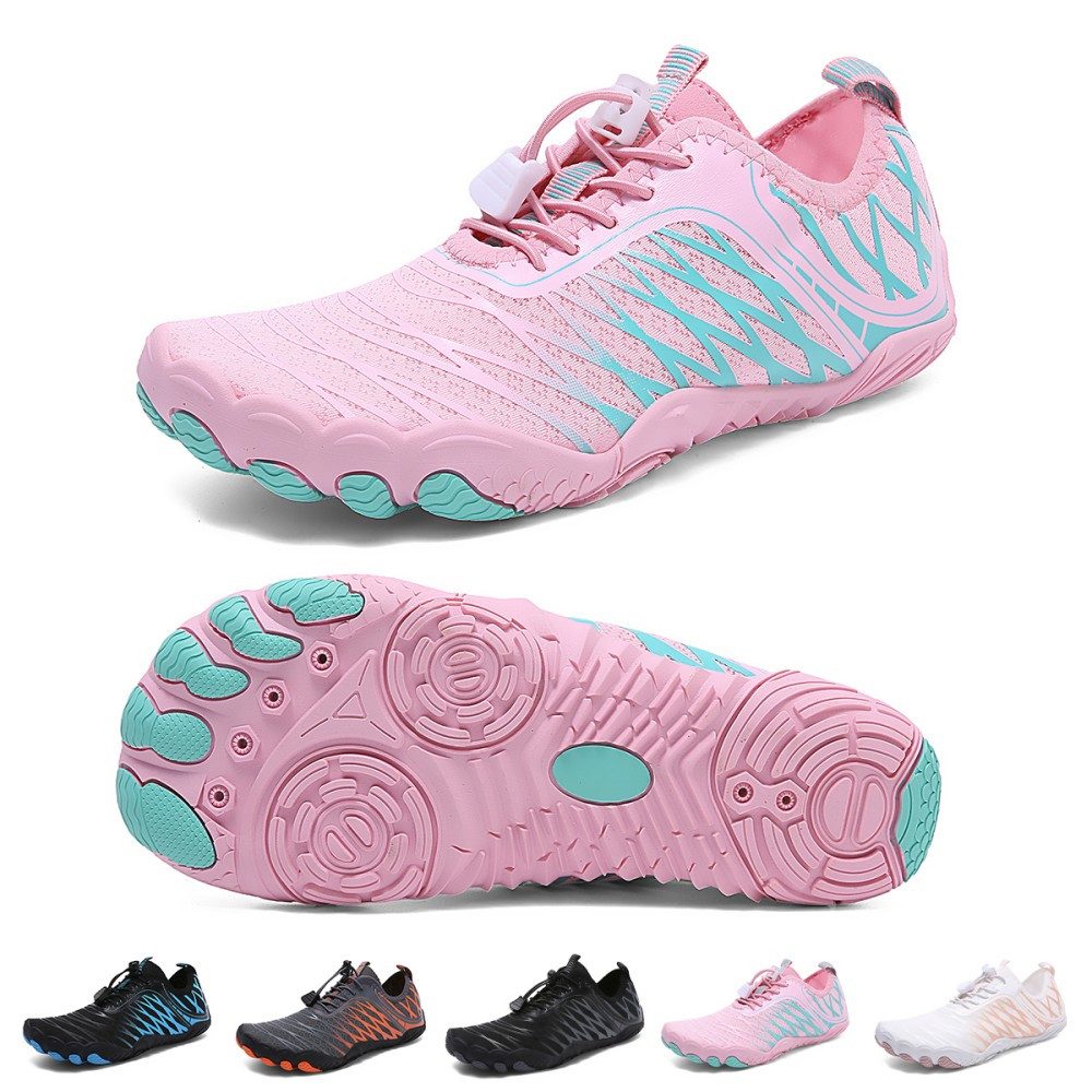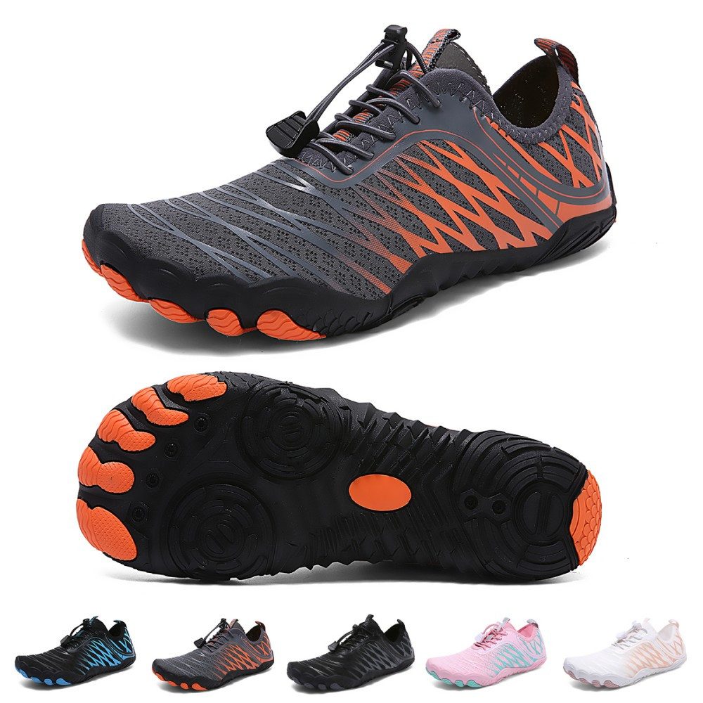 Entdecken Sie ultimativen Komfort und Schutz mit unseren hochwertigen Wasserschuhen – die perfekte Wahl für Strand, Schwimmbad, Wassersport und Outdoor-Abenteuer! Eigenschaften: ATMUNGSAKTIVES OBERMATERIAL – Das elastische Mesh-Gewebe sorgt für optimale Luftzirkulation und schnelles Trocknen, damit Ihre Füße stets frisch und trocken bleiben. SCHNELLTROCKNENDE INNENSOHLE MIT BELÜFTUNG – Die herausnehmbare Innensohle ist mit Belüftungslöchern ausgestattet, die den Wasserabfluss erleichtern und den Tragekomfort erhöhen. RUTSCHFESTE GUMMISOHLE – Die flexible Außensohle mit griffigem Profil bietet sicheren Halt auf nassen und rutschigen Oberflächen. Ideal für felsige Strände oder Wasserparks. SCHNELLVERSCHLUSS-SYSTEM – Dank des praktischen Schnellzugsystems lassen sich die Schuhe einfach an- und ausziehen und individuell anpassen. LEICHT UND FLEXIBEL – Das federleichte Design passt sich jeder Fußbewegung an und sorgt für ein barfußähnliches Tragegefühl. Ideal für Strandurlaub, Schnorcheln, Schwimmen, Kajakfahren, Surfen, Angeln, Wandern in Flussnähe oder beim Camping – diese Wasserschuhe sind der perfekte Begleiter für Ihre Abenteuer am und im Wasser!