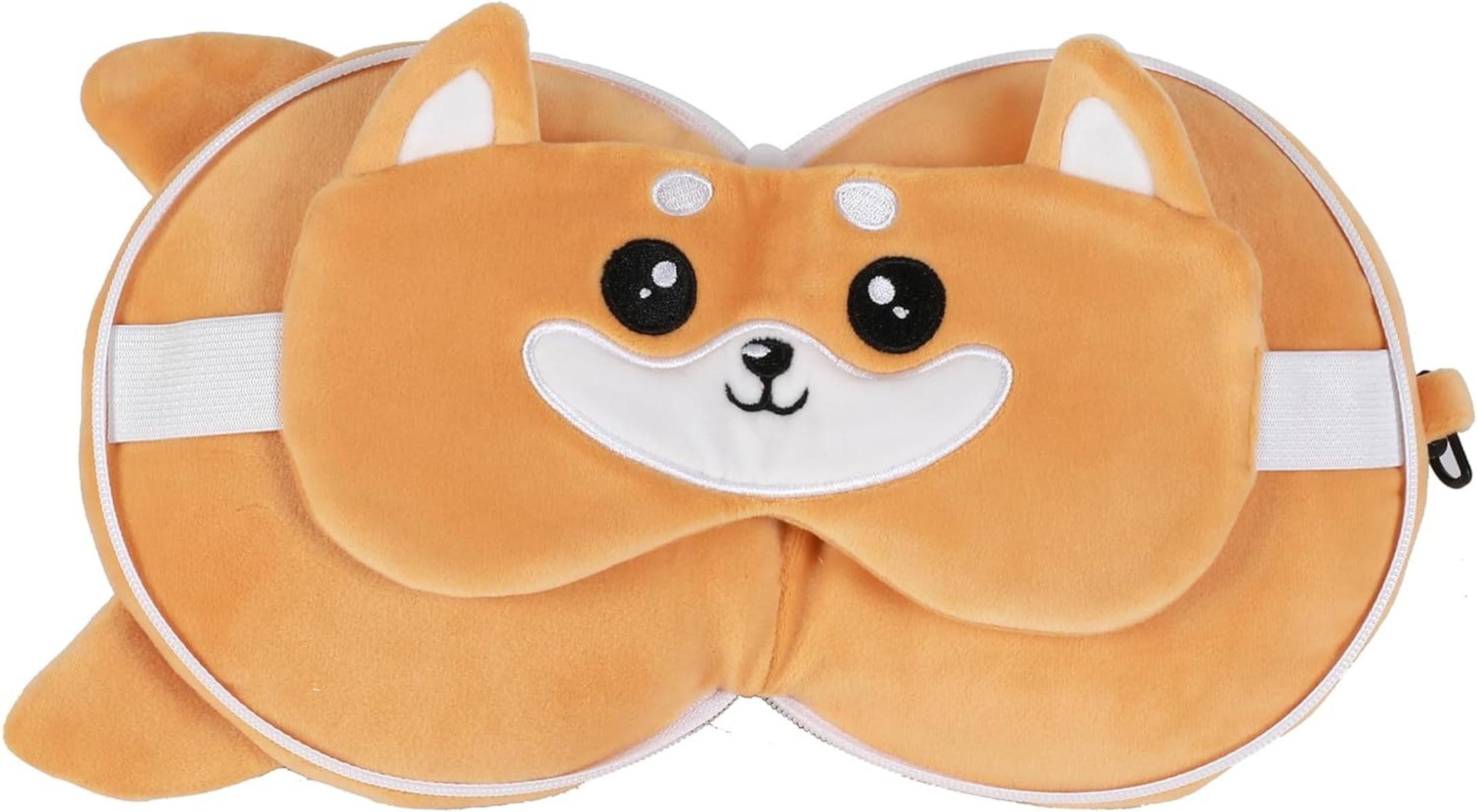 I-TOTAL ® - Kissen mit Schlafmaske, verschließbares Kissen mit Haken für Reise (SHIBA)