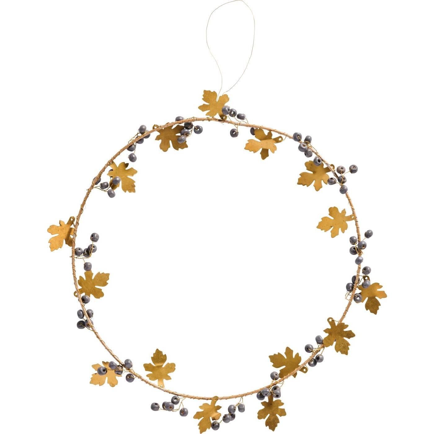 Dieser Kranz mit Messingblättern und dunkelgrauen Holzperlen verleiht Ihrem Zuhause schnell eine magische Weihnachtsstimmung.