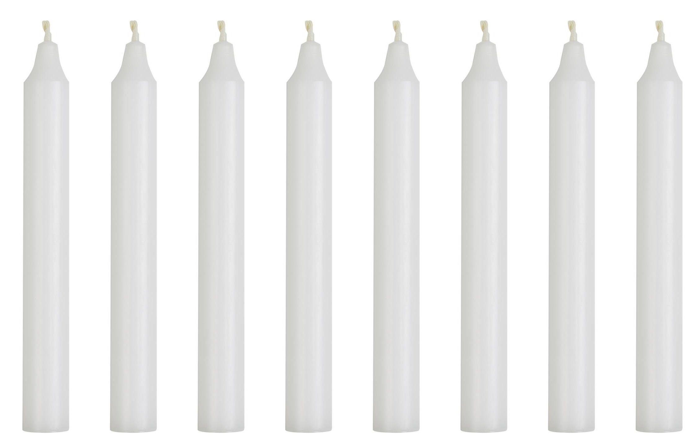 8er Pack tolles im Vintage Landhausstil rustikales Kerzenset in REINWEIß mit. 18cm Höhe. Brennzeit je Kerze 8 Stunden.