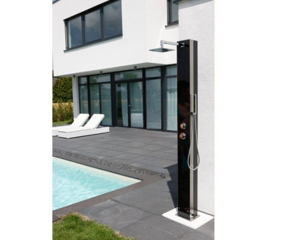 Das Thermometer klettert auf Höchsttemperaturen und Sie sehnen sich nach einer erfrischenden Abkühlung? An Ihrem privaten Pool fehlt noch eine stilvolle Dusche? Dann ist die Gartendusche KUBA genau das Richtige für Sie. Diese Gartendusche überzeugt durch die moderne und edle Optik, die Kombination aus glänzendem Edelstahl, schwarzem Sicherheitsglas und verchromten Armaturen sorgt für ein stilvolles und elegantes Ambiente. Entspannen Sie sich in Ihrem Garten mit der Gartendusche KUBA.