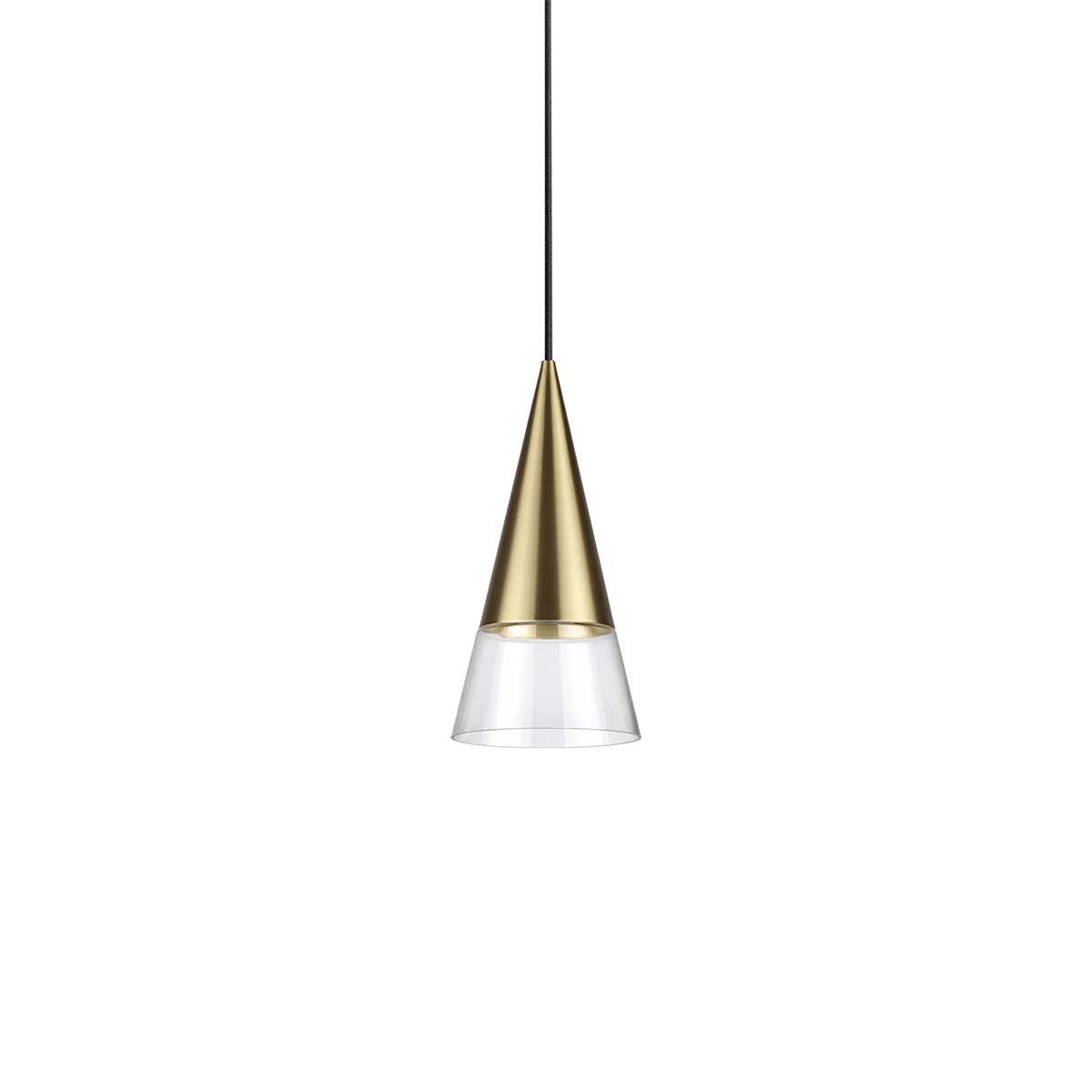 Die Ideal Lux Cono SP1 Pendelleuchte überzeugt mit ihrem klaren, konisch geformten Design – erhältlich in elegantem Messing oder modernem Chrom. Ein transparenter Glasdiffusor rundet das edle Erscheinungsbild ab und sorgt für eine stilvolle Lichtwirkung.