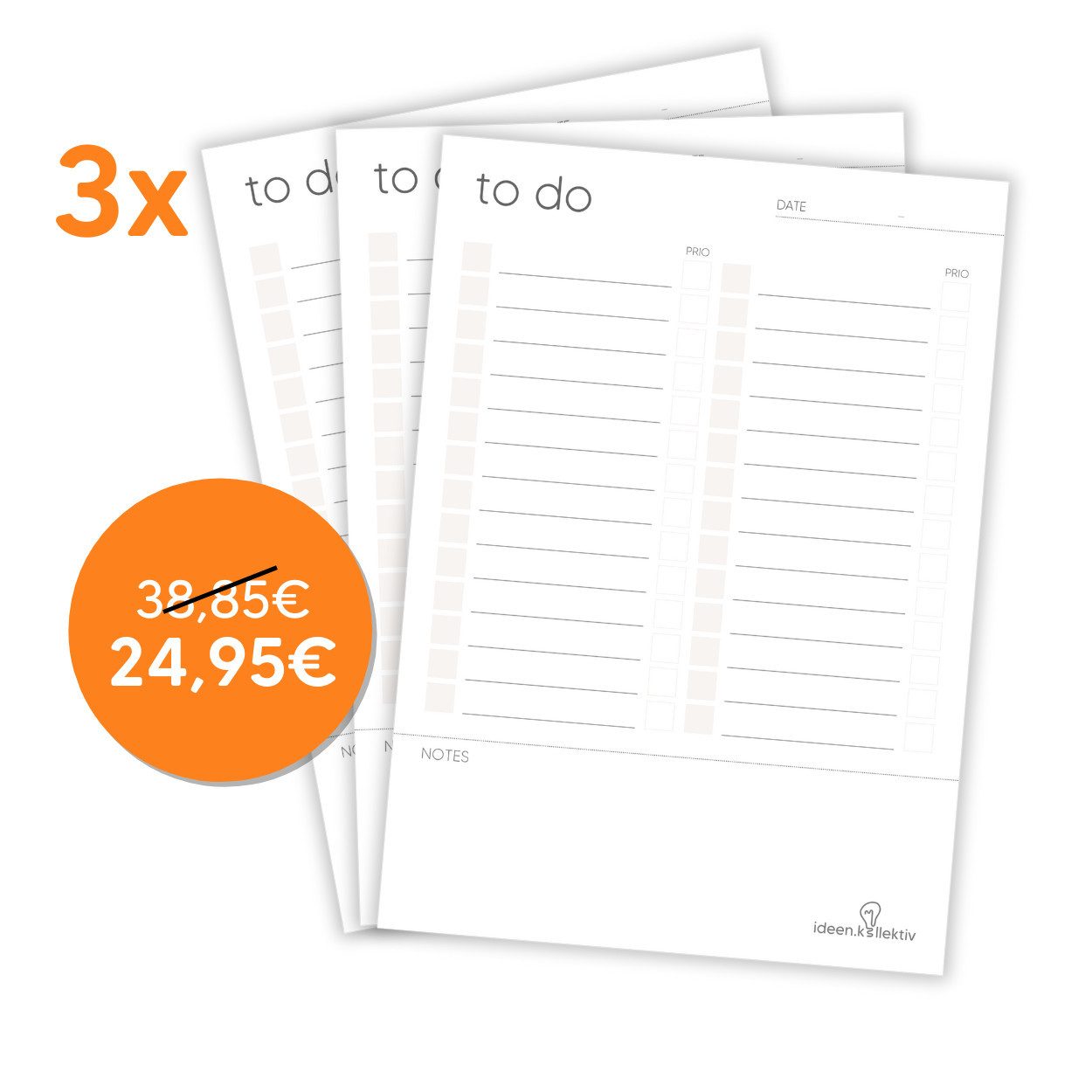 Die perfekte Aufteilung für effektives Zeit- und Projektmanagement: Unsere To-Do-Listen haben neben den Felder zum abhaken auch ein Feld für eine individuelle Priorisierung.