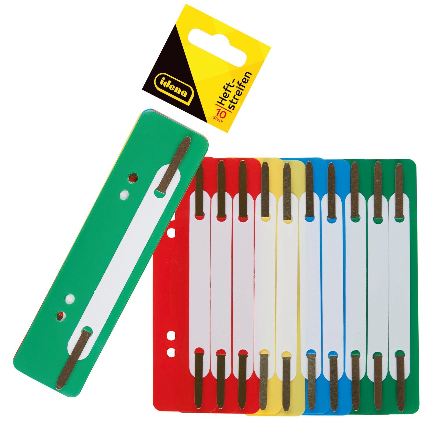 Aktenordner Idena 300411 - Heftstreifen, 10 Stück, in 4 Farben, aus Kunststoff