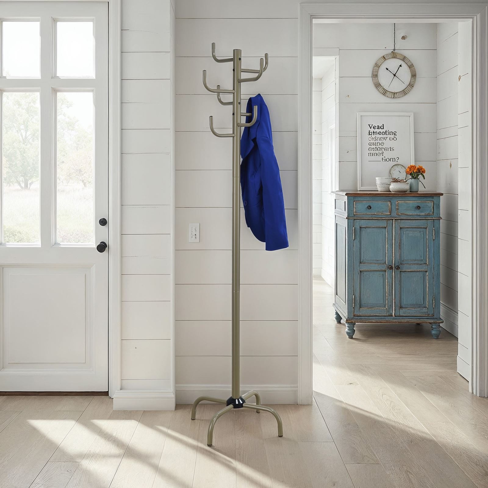 zaubert ein fröhliches Ambiente in Flur oder Diele. Mit 8 Kleiderhaken ausgestattet, bietet er genügend Platz für Jacken, Taschen und Accessoires. Die 4 Füße sorgen für Stabilität und Standfestigkeit. Ob im Flur oder im Büro, für unseren praktischen Kleiderständer finden Sie überall einen Platz.