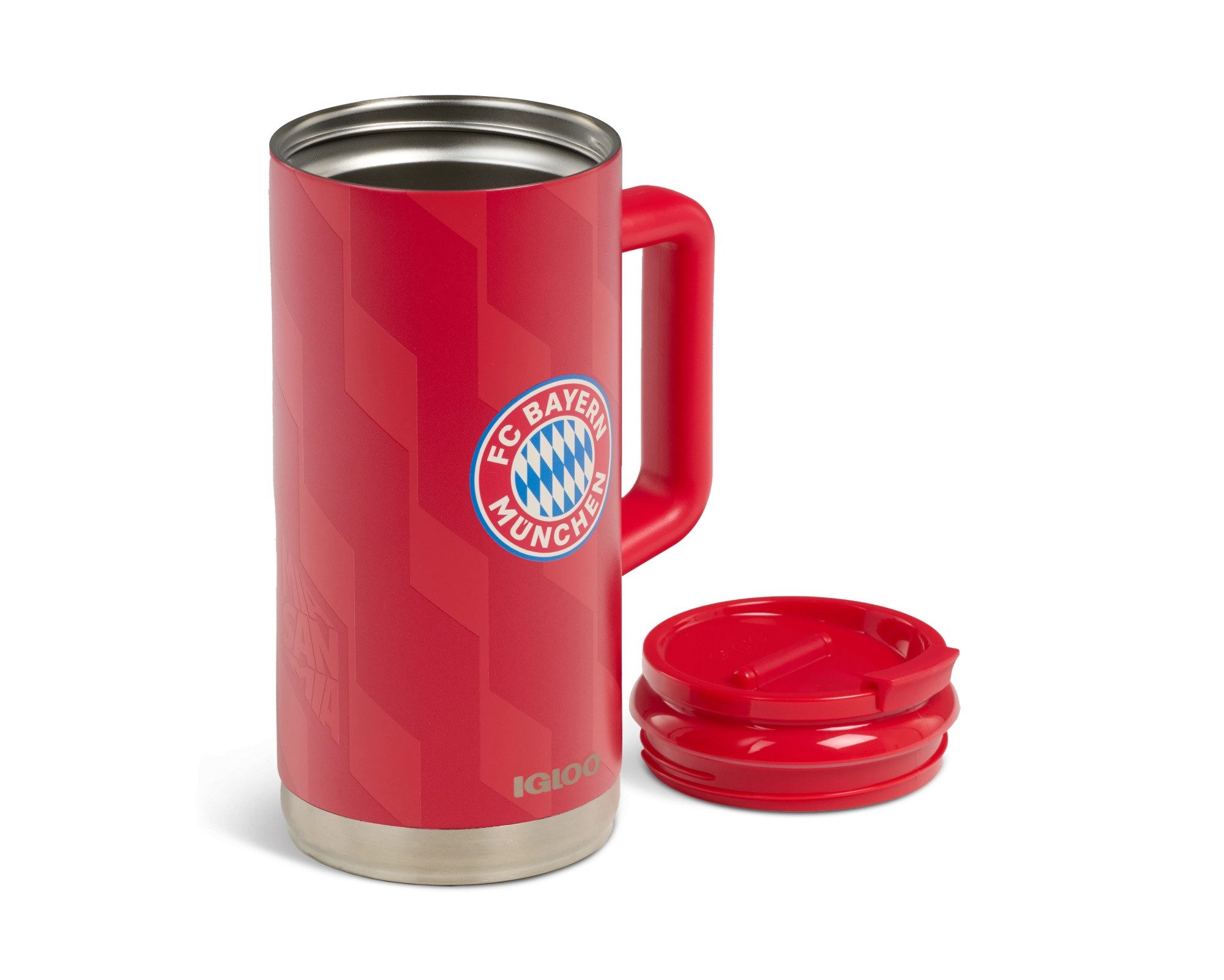Isolierter Thermo-Maßkrug im FC Bayern München Design.
