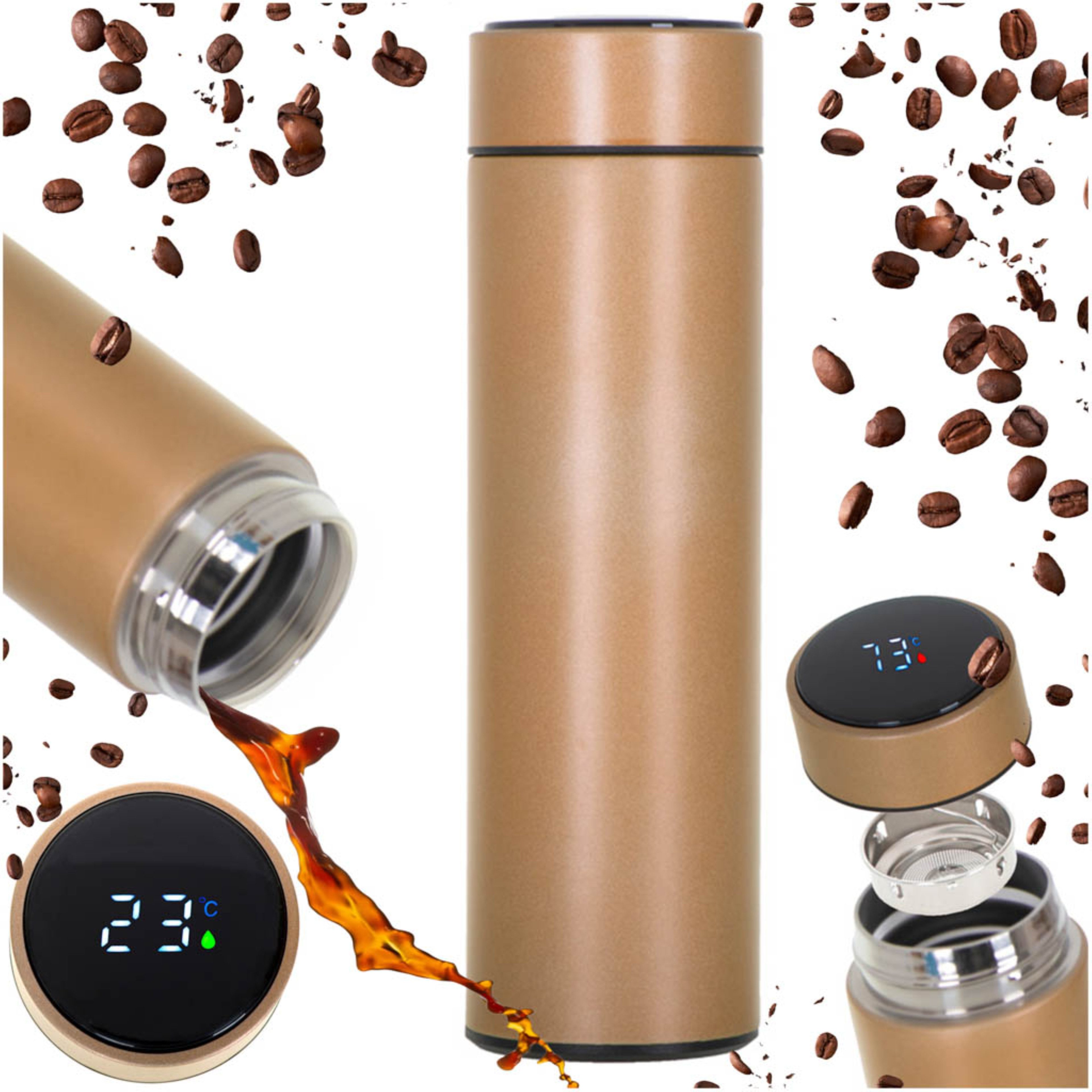 Besondere Merkmale | Thermosbecher 500ml mit LED-Display, Vakuumisolierung & Siebeinsatz |