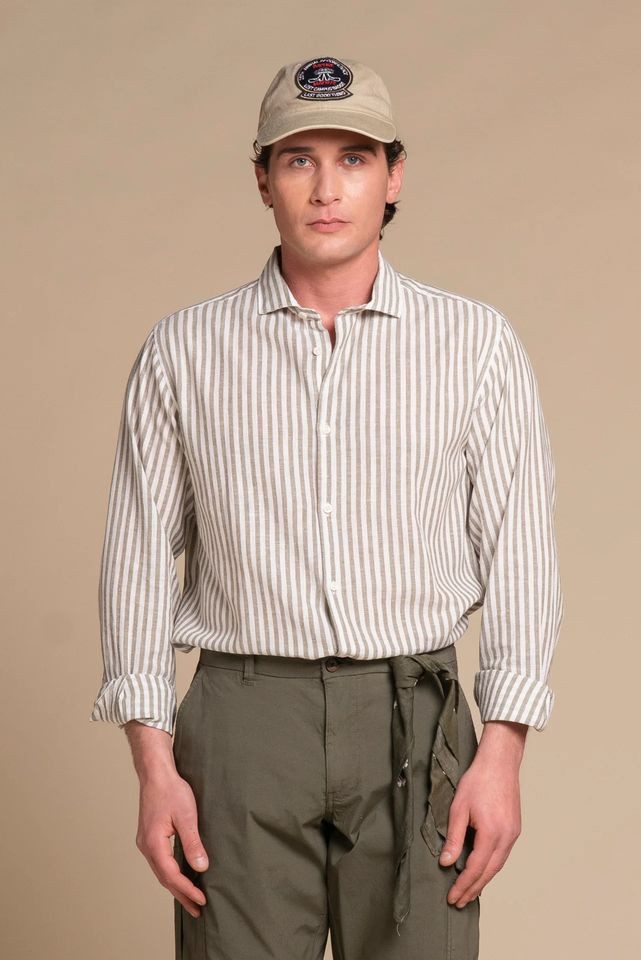 Langarmhemd aus Leinen-Baumwoll-Mix mit französischem Kragen und Streifenmuster. Leicht, atmungsaktiv und stilvoll