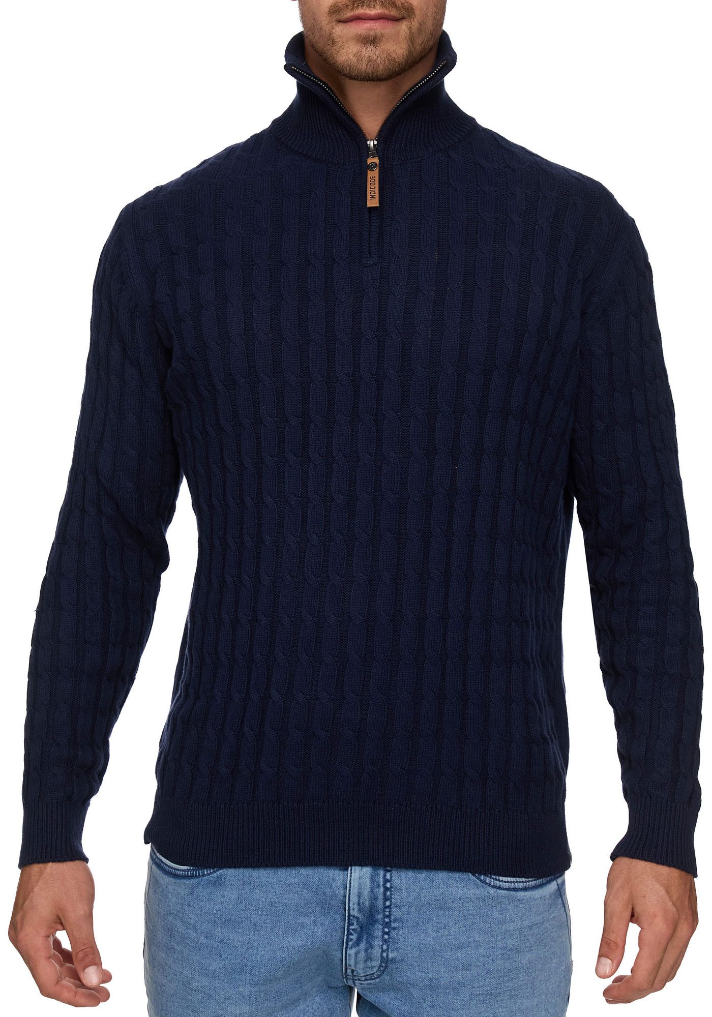 Mit dem Troyer »Rufus« von Indicode lassen sich schnell neue Styles zusammenstellen. Der Kragen steht nach oben und liegt am Hals an, wodurch du legere Freizeit-Outfits kombinieren kannst. Die langen Ärmel enden in einem Rippbündchen, das für guten Sitz sorgt. Dieser Pullover ist hüftlang sowie basic geschnitten, wodurch dein Oberkörper locker umspielt wird.