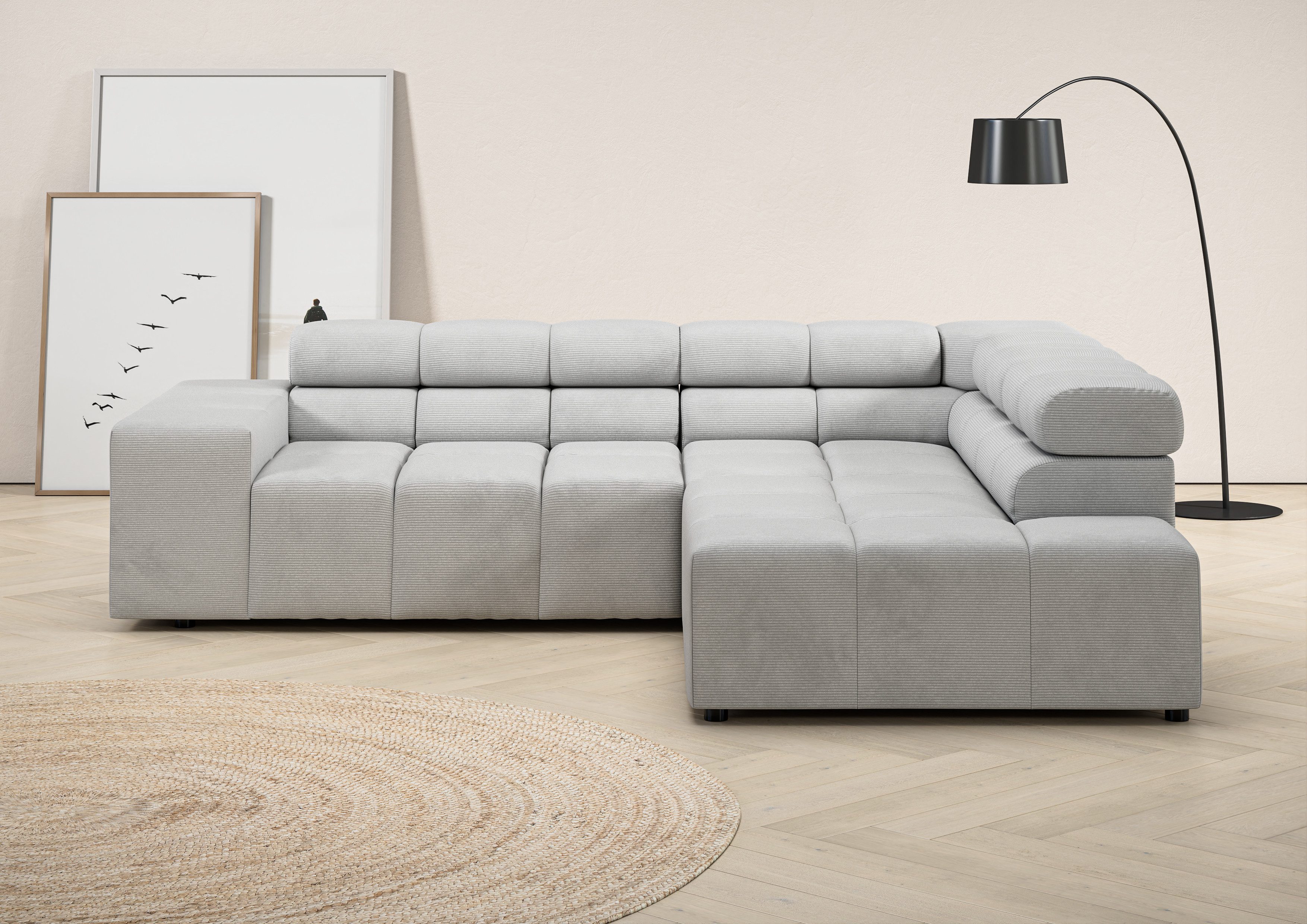 Mit dem Ecksofa »Ancona, incl. Kopfteilverstellung + 3 Zierkissen, L-Form, Breite 249cm« von INOSIGN brauchst du dir keine Gedanken über fehlende Sitzplätze machen.