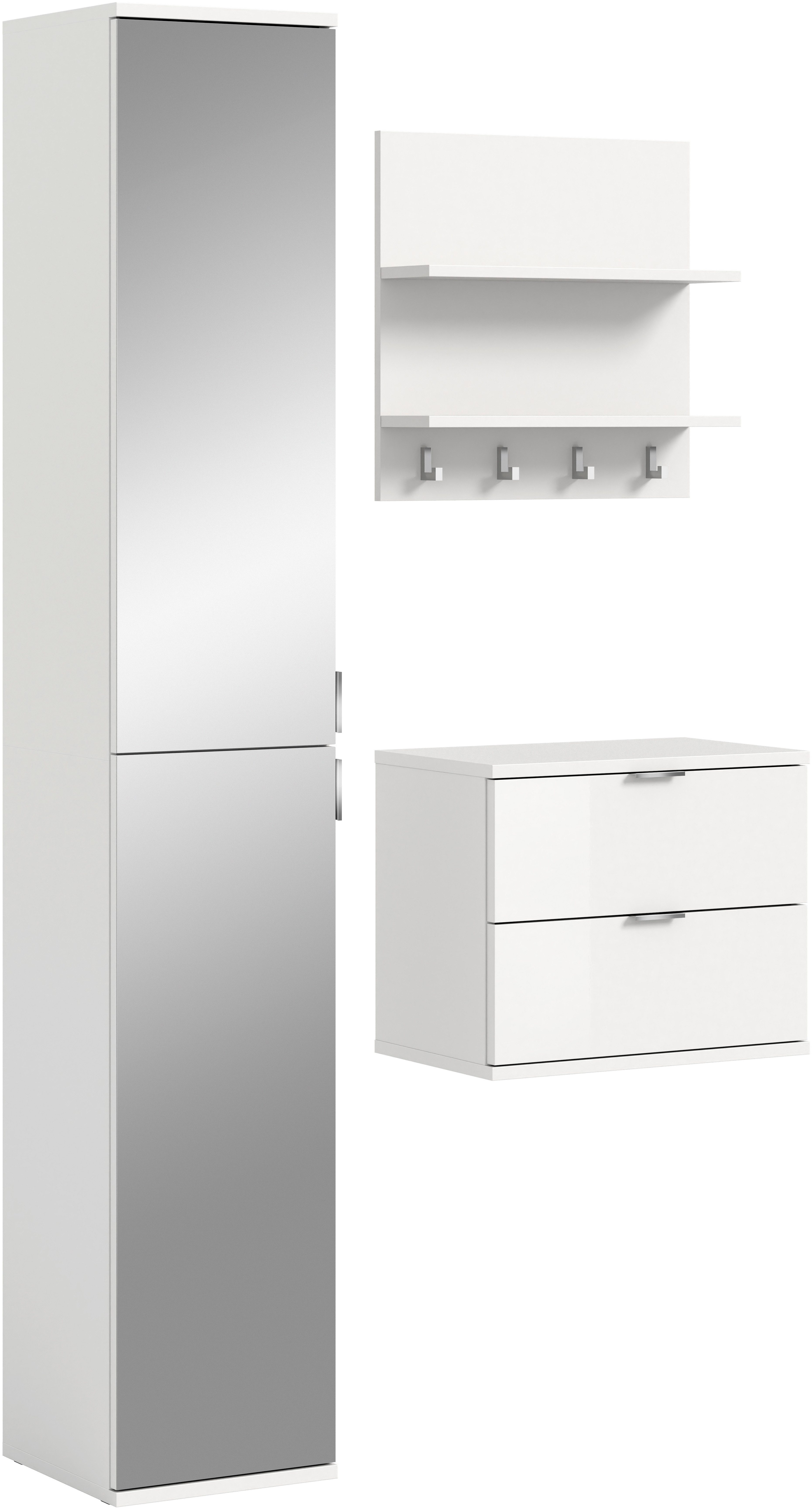Set beinhaltet | Spiegelschrank, Sitzbank/Kommode, Paneel |
