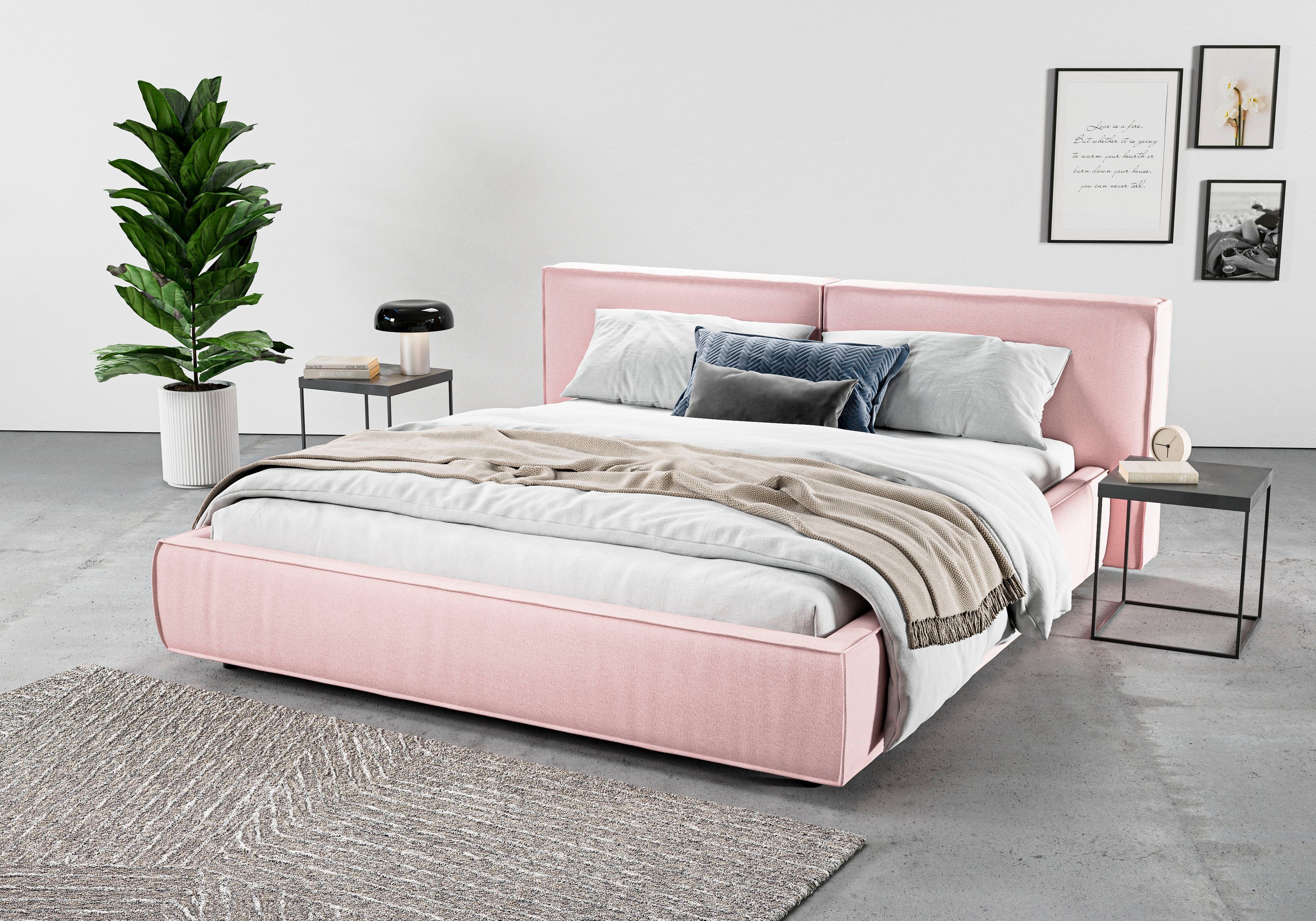 In diesem Polsterbett »Adrina mit Biesenoptik, Feincord und Luxus-Microfaser« von INOSIGN lässt es sich nicht nur komfortabel schlafen. Am weichen Kopfteil kannst du dich zum Lesen gemütlich anlehnen. Die maximale Belastbarkeit liegt bei einem Gewicht von 280 Kilogramm. Das gepolsterte Bettgestell ist mit runden Füßen versehen. Das Kopfteil ist 91 cm hoch.