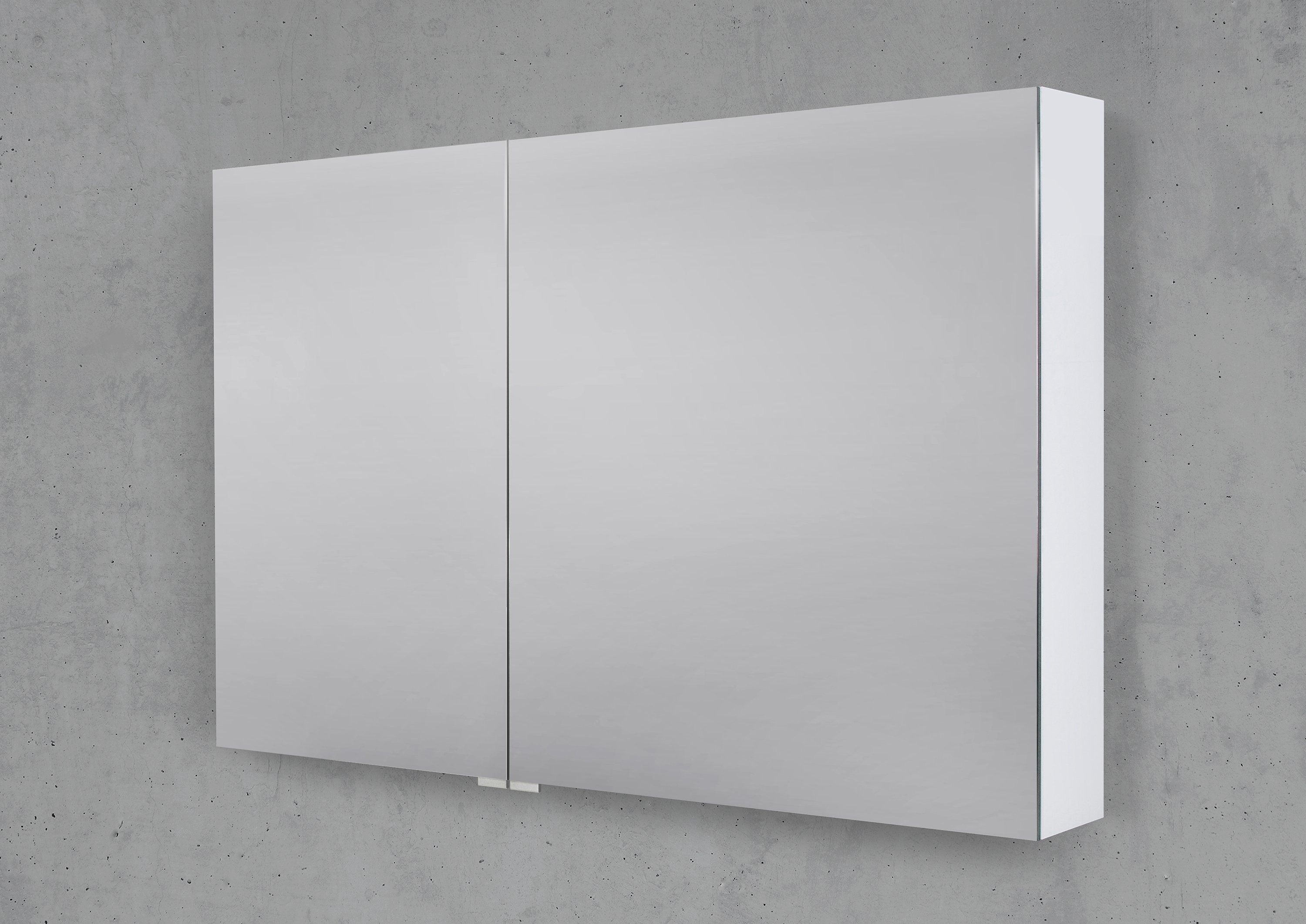 Design Spiegelschrank mit beidseitig verspiegelten Türen inkl. Türdämpfungen.