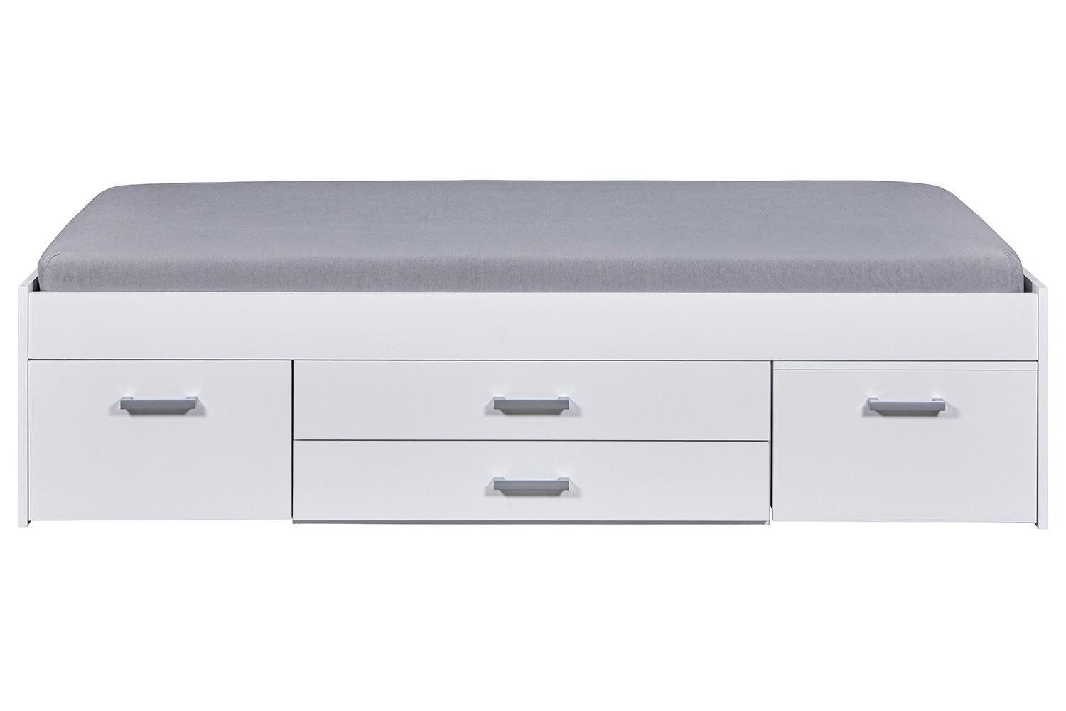 Lieferumfang | 1 Bettgestell mit 3 Schubladen und ausziehbarem Nachttisch. Ohne Matratze und Lattenrost |