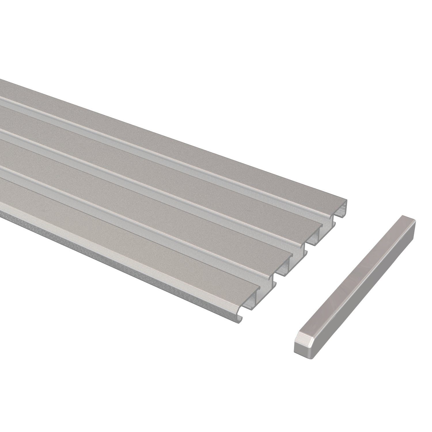 Schienenprofil aus Aluminium / Endkappen aus Kunststoff in Silbergrau