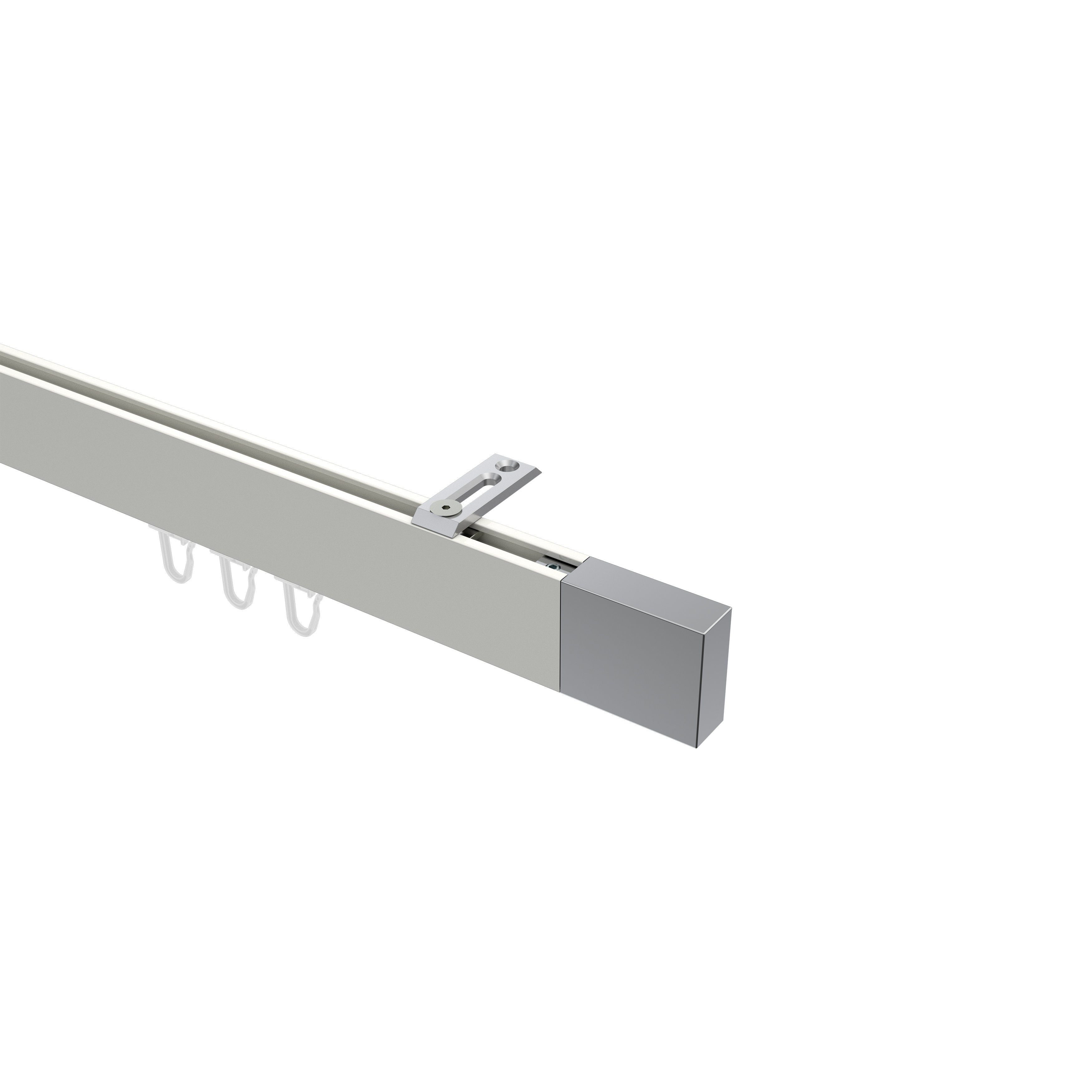 Diese kantigen Gardinenstangen mit Innenlauf in Weiß / Chrom bringen den aktuellen Trend von schlichten Formen mit in die Gardinendekoration ein. Die eckigen Innenlaufstangen des Modells Smartline (Universal) Lox bestehen aus Aluminium und Metall und werden direkt unter der Decke montiert. Geliefert wird diese Innenlaufstange als montagefertiges Set inkl. Zubehör wie Träger, Endstücke und Befestigungsmaterial. Die Gardinen und Vorhänge werden mit dessen Kräusel- oder Gardinenband direkt mit den Faltengleitern verbunden. Material: Aluminium (Innenlaufprofil) / Metall (Zubehör) Farbe: Farbe: Weiß / Chrom (Profil Weiß / Zubehör Chrom) Ausführung: einläufig Profil (B x H): 14 x 35 mm Träger (Halterungen): Deckenträger mit ca. 0,3 cm Deckenabstand (Trägerabstand) Befestigungsmöglichkeit(en): Deckenbefestigung Lieferumfang: 1 Stk. Innenlaufprofil (bis 200 cm Довжина = ungeteilt, größer als 200 cm bis 280 cm = geteilt in 2 Teilstücke pro Lauf, 300 cm = geteilt in 3 Teilstücke pro Lauf, größer als 300 cm bis 400 cm = geteilt in 2 Teilstücke pro Lauf, größer als 400 cm bis 600 cm = geteilt in 3 Teilstücke pro Lauf), 2 Stk. Endstücke, 2 Stk. Träger (größer als 200 cm bis 280 cm = 3 Stk. Träger, 300 cm = 4 Stk. Träger, größer als 300 cm bis 400 cm = 3 Stk. Träger, größer als 400 cm bis 600 cm = 4 Stk. Träger), Faltengleiter mit Faltenlegehaken (1 Stk. Faltengleiter mit Faltenlegehaken pro 10 cm Stangenlänge) u. Befestigungsmaterial. Zwischengrößen, Überlängen und Spezialanfertigungen auf Anfrage. Die oben angegebenen Größen beziehen sich auf die reine Stangenlänge zzgl. der Endstücke. Herstellerhinweis, Empfehlung und Farbhinweis: Abhängig von Verwendung kann es unter Umständen möglich sein, dass unabhängig vom Lieferumfang und Розмір ein zusätzlicher Zwischenträger erforderlich sein kann. Die Farbwiedergabe der Abbildung bzw. des Bildmaterials kann eventuell von den Original Farben abweichen. Dieses könnte unter anderem von den Einstellungen Ihrer Grafikkarte und Ihres Monitors abhängig sein.