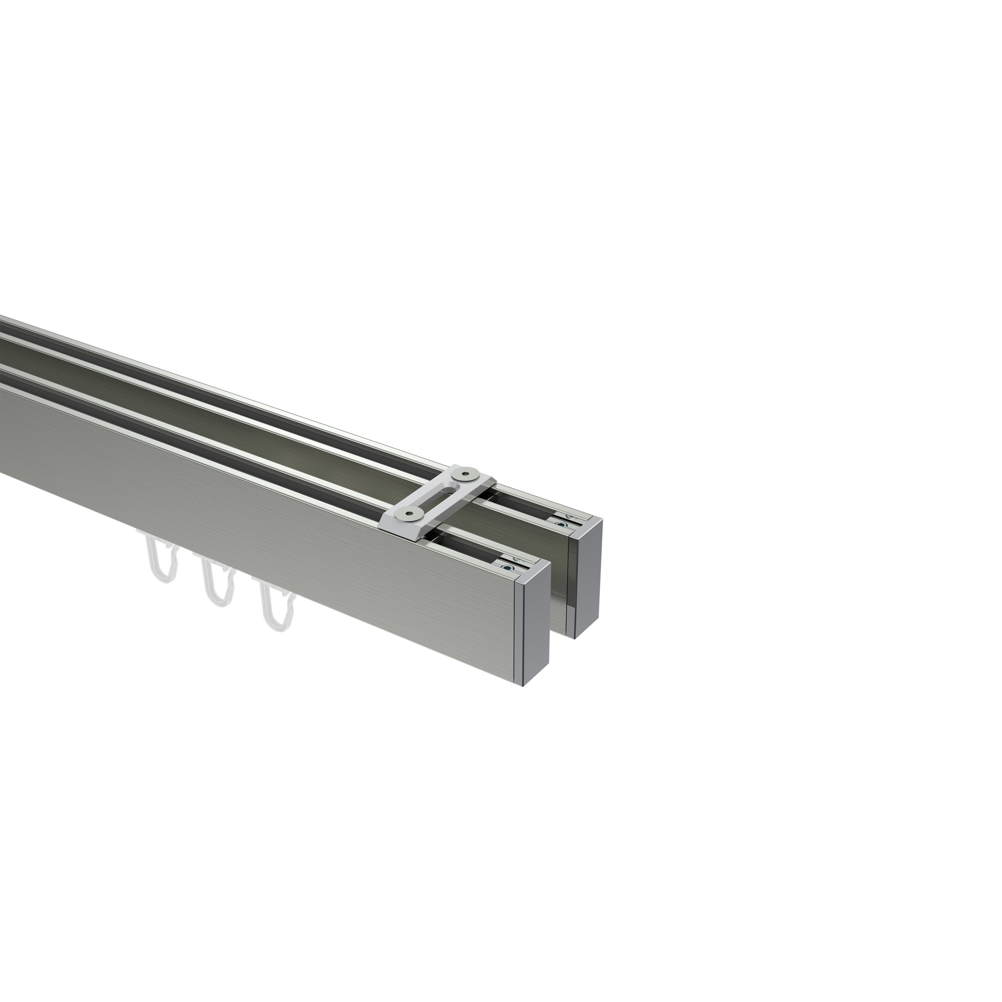 Diese Gardinenstange mit Innenlauf in Edelstahl-Optik / Chrom liegt im Trend schlicht wirkender Fensterdekoration. Die Innenlaufstangen des Modells Smartline (Universal) Paxo in Doppellauf-Ausführung bestehen aus Aluminium und Metall und werden für die direkte Deckenmontage verwendet. Geliefert wird diese Innenlaufstange als Set, d. h. montagefertig inkl. Halter, Endstücke und Befestigungsmaterial. Die Gardinen bzw. Vorhänge werden mit dessen Kräusel- oder Gardinenband an den Faltengleitern befestigt. Material: Aluminium (Innenlaufprofil) / Metall (Zubehör) Farbe: Edelstahl-Optik / Chrom (Profil Edelstahl-Optik / Zubehör Chrom) Ausführung: doppelläufig Profil (B x H): 14 x 35 mm Träger (Halterungen): Deckenträger mit ca. 0,3 cm Deckenabstand (Trägerabstand) Befestigungsmöglichkeit(en): Deckenbefestigung Lieferumfang: 2 Stk. Innenlaufprofile (bis 200 cm Довжина = ungeteilt, größer als 200 cm bis 280 cm = geteilt in 2 Teilstücke pro Lauf, 300 cm = geteilt in 3 Teilstücke pro Lauf, größer als 300 cm bis 400 cm = geteilt in 2 Teilstücke pro Lauf, größer als 400 cm bis 600 cm = geteilt in 3 Teilstücke pro Lauf), 2 Stk. Endstücke für dieses Modell (vordere Stange), 2 Stk. Endstücke (hintere Stange), 2 Stk. Träger (größer als 200 cm bis 280 cm = 3 Stk. Träger, 300 cm = 4 Stk. Träger, größer als 300 cm bis 400 cm = 3 Stk. Träger, größer als 400 cm bis 600 cm = 4 Stk. Träger), Faltengleiter mit Faltenlegehaken (1 Stk. Faltengleiter mit Faltenlegehaken pro 10 cm Stangenlänge je Lauf) u. Befestigungsmaterial. Zwischengrößen, Überlängen und Spezialanfertigungen auf Anfrage. Die oben angegebenen Größen beziehen sich auf die reine Stangenlänge zzgl. der Endstücke. Herstellerhinweis, Empfehlung und Farbhinweis: Abhängig von Verwendung kann es unter Umständen möglich sein, dass unabhängig vom Lieferumfang und Розмір ein zusätzlicher Zwischenträger erforderlich sein kann. Die Farbwiedergabe der Abbildung bzw. des Bildmaterials kann eventuell von den Original Farben abweichen. Dieses könnte unter anderem von den Einstellungen Ihrer Grafikkarte und Ihres Monitors abhängig sein.