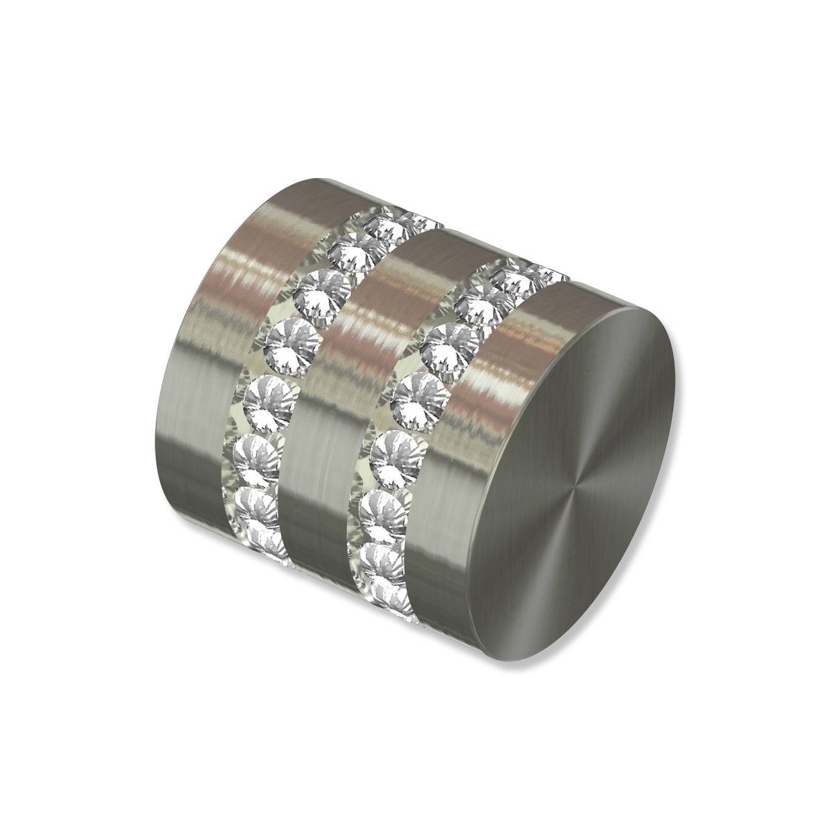 Beschreibung | 2 Endstücke aus Metall in Edelstahl-Optik / Form Kappe mit Glitzersteinen |