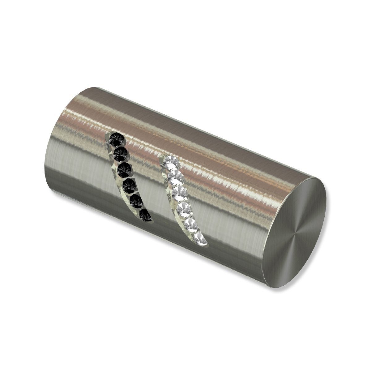 2 Endstücke aus Metall in Edelstahl-Optik / Form Zylinder mit Glitzersteinen