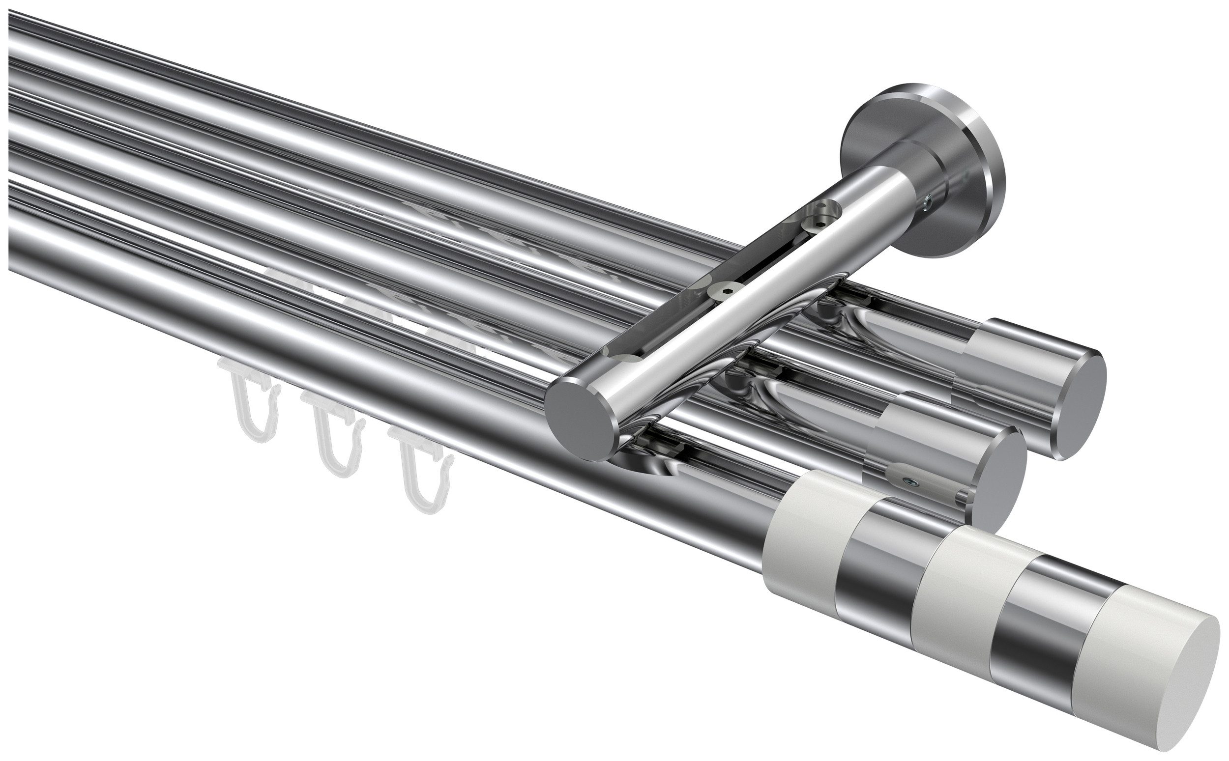 Lieferumfang | Endstücke "Kappe" Chrom Endstücke "Zylinder / Bicolor" Weiß/Chrom Faltengleiter mit Faltenlegehaken Innenlaufprofil 100 cm Chrom Träger 1-3-läufig Langloch Chrom inkl. Befestigungsmaterial |
